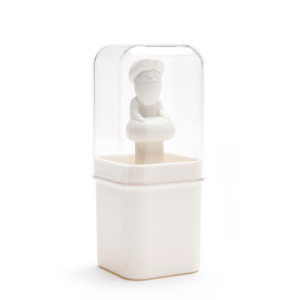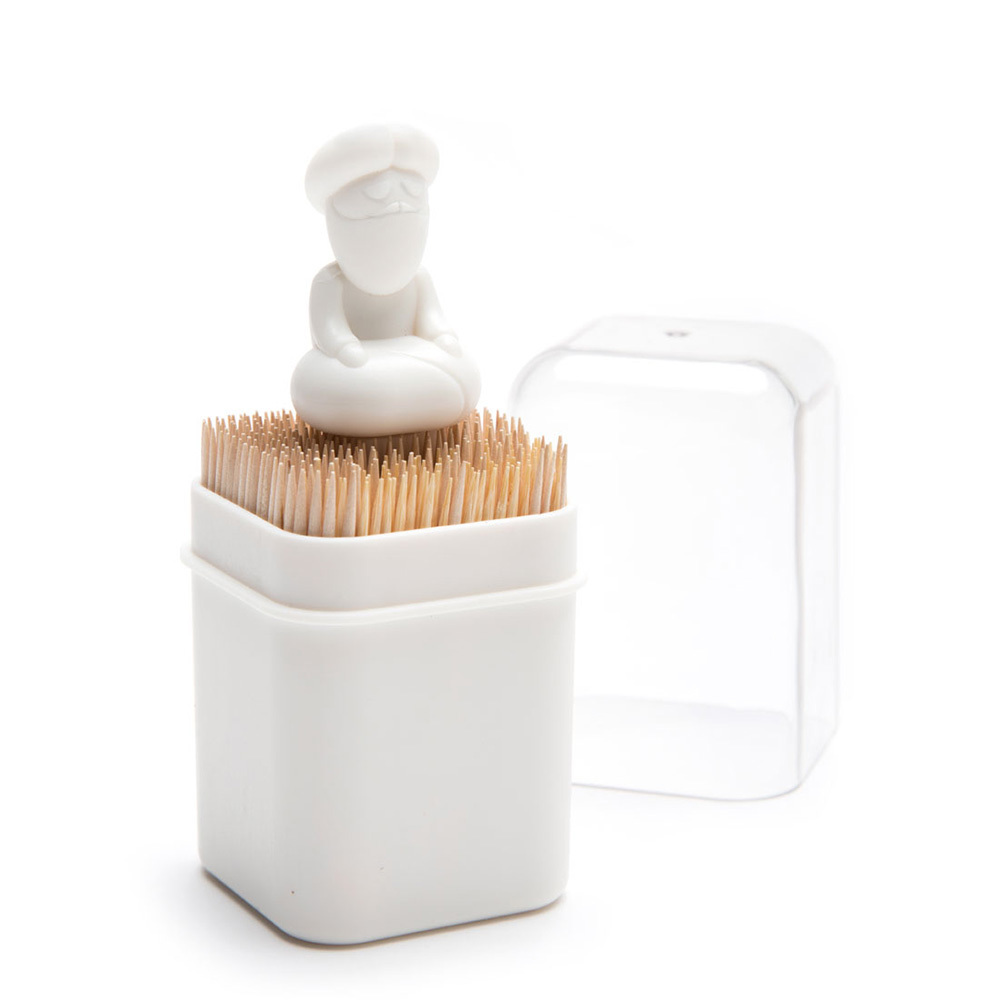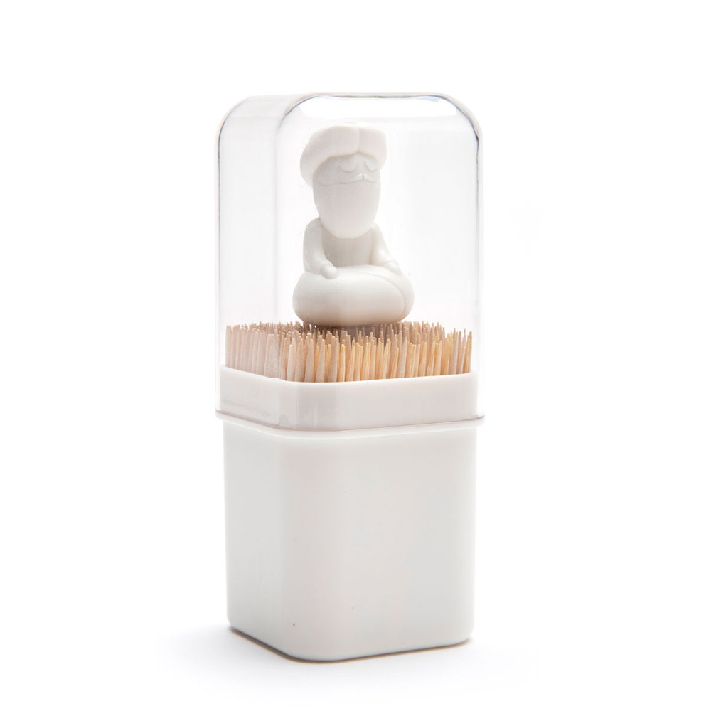 Оригинальная подставка для зубочисток. Фигурка в виде «медитирущего» йога служит в качестве подпорки: зубочистки остаются в вертикальном положении, сколько бы их не оставалось. Прозрачная крышка защищает содержимое от пыли.