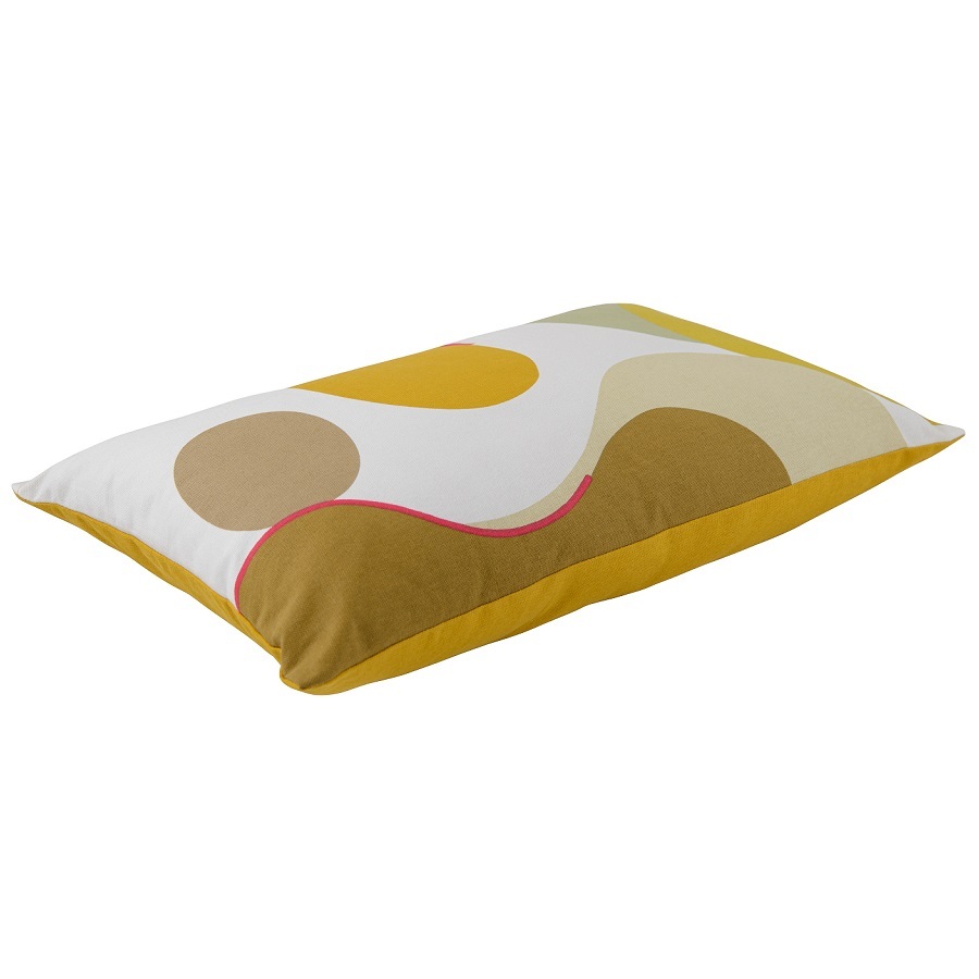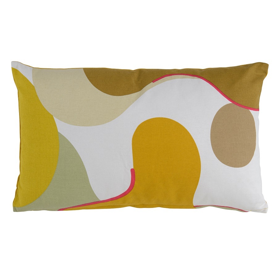 Подушка декоративная из хлопка горчичного цвета с авторским принтом из коллекции Freak Fruit дополнит любой современный интерьер. Абстрактный принт не имеет повторяющегося раппорта и представляет собой единую законченную картину.