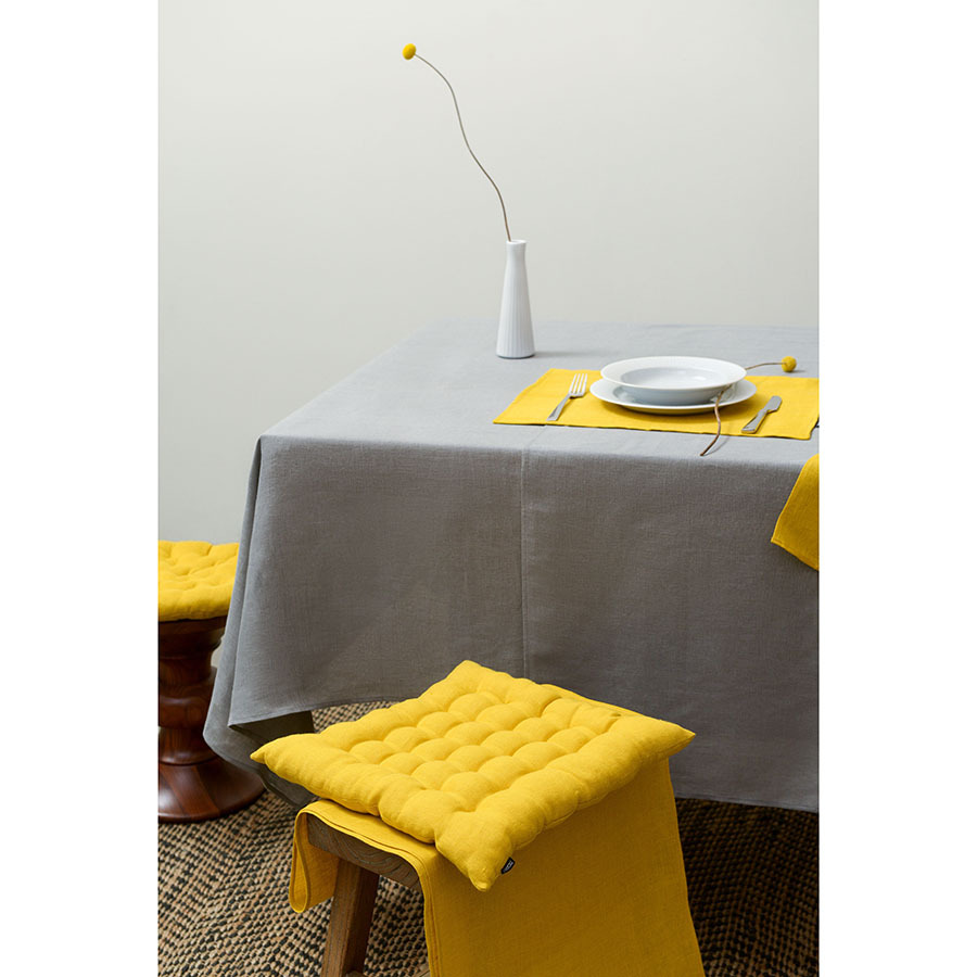 Подушка на стул из стираного льна горчичного цвета из коллекции Essential – практичное и стильное украшение кухонной мебели. Однотонное изделие в лаконичном дизайне органично впишется в любой интерьер. Подушку можно использовать в качестве подкладки на деревянные или металлические стулья. Благодаря плотному наполнителю из полиэстера она не потеряет форму.