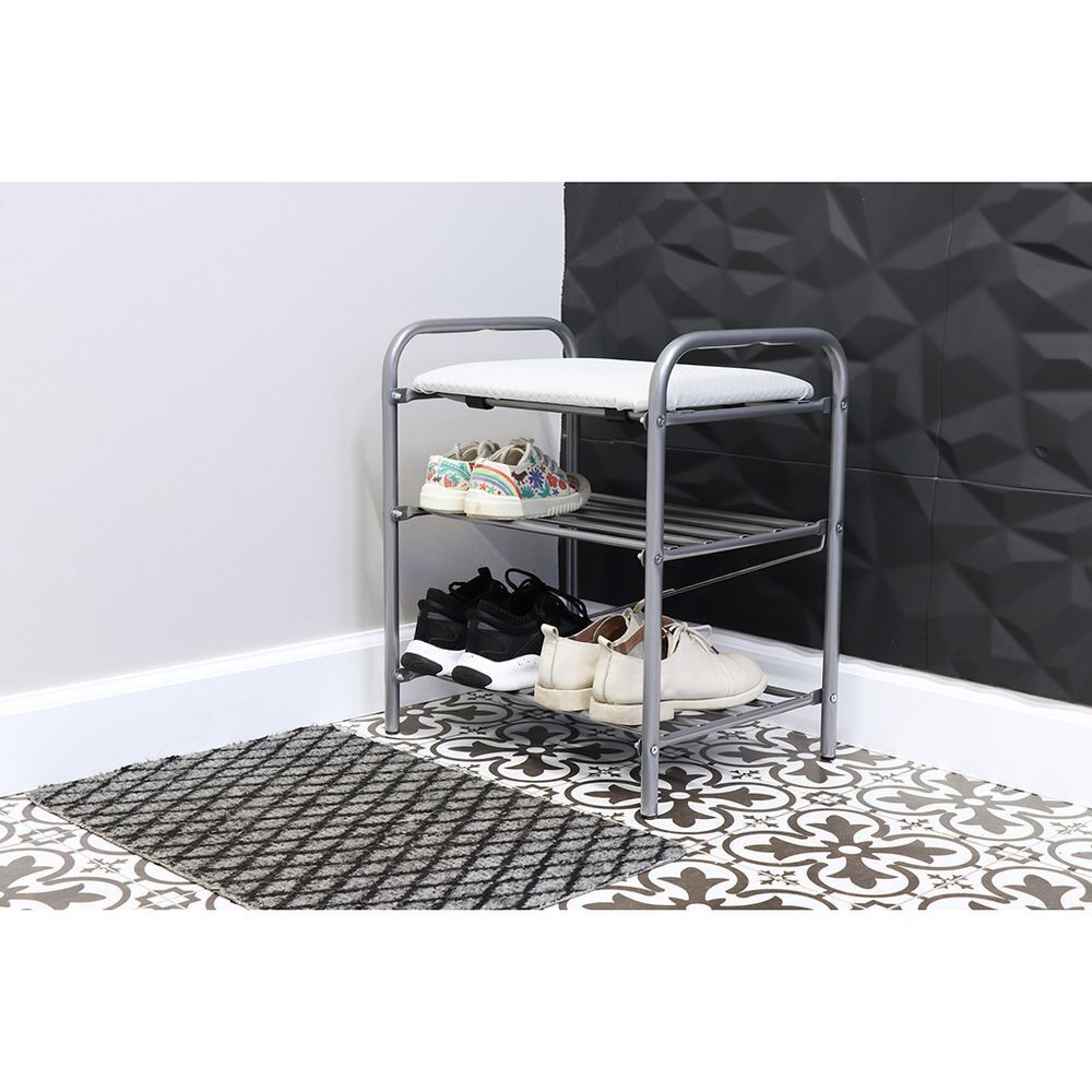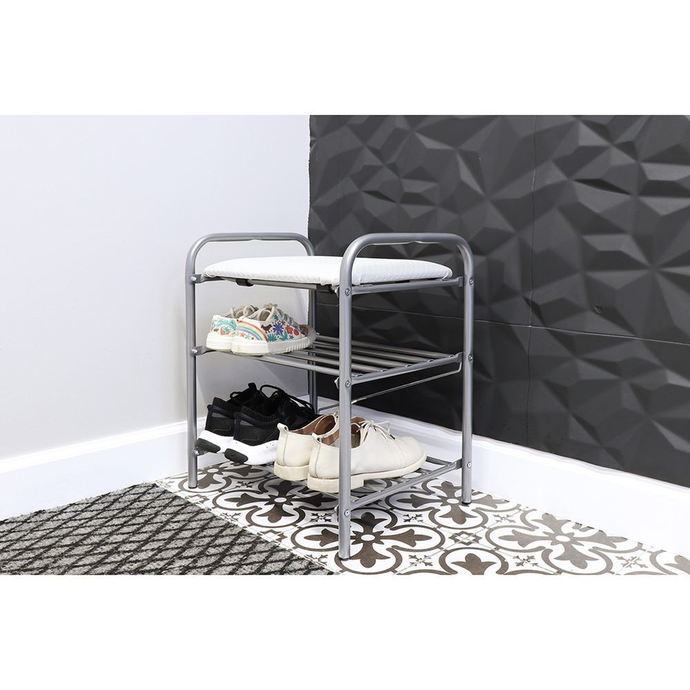 Полка для обуви, мет-л, 3 секц, 44х33х50 см, с сиден, сер, Nika, Б1/С