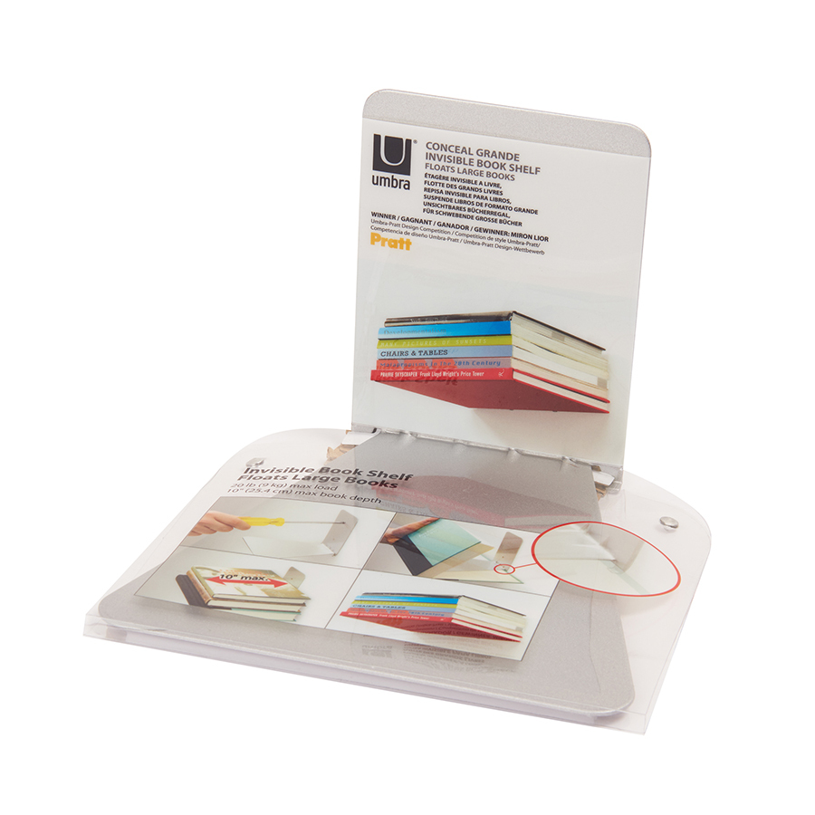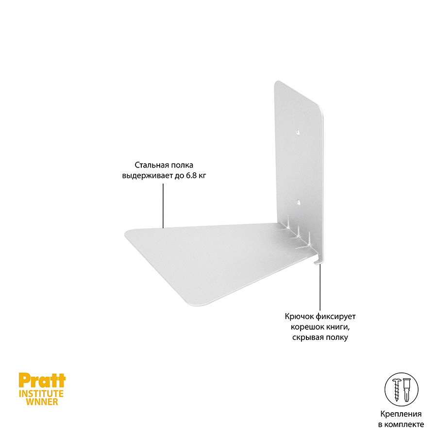 Полка легко крепится к стене, создавая иллюзию парения книг в воздухе. Монтажное оборудование входит в комплект. Размеры: 18х14x18 см.