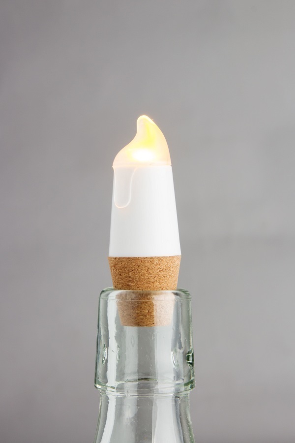 Пробка для бутылки Bottlelight с подсветкой и USB – оригинальное решение для оформления романтического ужина в любом месте. Изделие имитирует пламя свечи, которая горит мягким оранжевым светом. Чтобы зажечь его, нужно только повернуть верхнюю часть по часовой стрелке. Нижняя часть – корковая основа, которая позволяет сохранить аромат и вкус вина неизменным. Время подзарядки аккумулятора – 45 минут, автономной работы – 3 часа. Размеры – 23х66х23 мм. Материалы – пластик, корковая пробка.