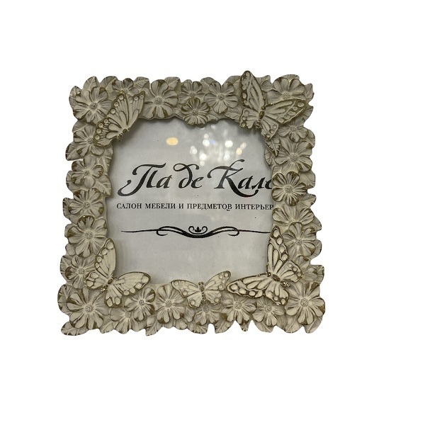 Фоторамка оформлена декоративными элементами в виде бабочек и цветочков. Это красивый и практичный подарок на любое торжество, который многим придётся по вкусу.