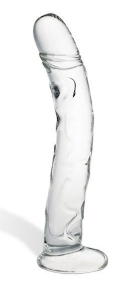 Фаллоимитатор из прозрачного стекла, рельефный, имеет подставку, на которой надежно стоит на плоской поверхности. Длина: 19 см. Диаметр: 3 см.