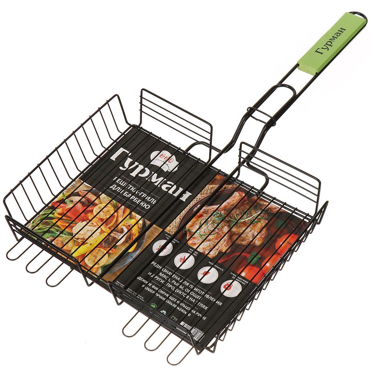Решетки барбекю применяются для приготовления мяса, рыбы, окорочков, сосисок, сарделек, колбасок, бифштексов, овощей и многого другого на мангале, костре, в камине. Решётка для барбекю порадует всех любителей пикников, загородных поездок и дачных посиделок. Надёжная деревянная ручка обеспечит комфортное использование, позволяет уменьшить вероятность получения ожога во время готовки, а размер решётки позволит разместить на ней достаточное количество мяса. В отличие от шампуров решетка универсальна. Она проста в эксплуатации и не вызывает сложностей в уходе.