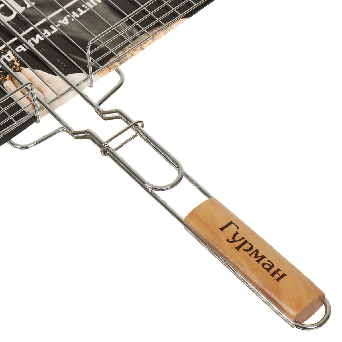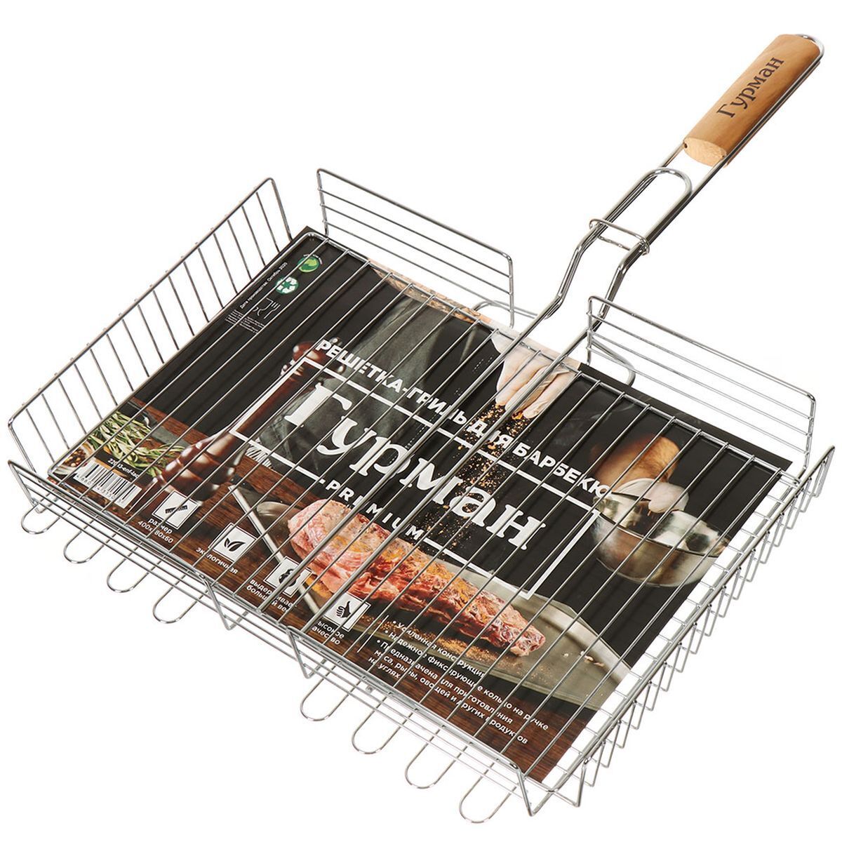 Решетка барбекю 400х280х60 мм, Гурман, Люкс, хром, рукоятка дерево, 22003-enf-lac