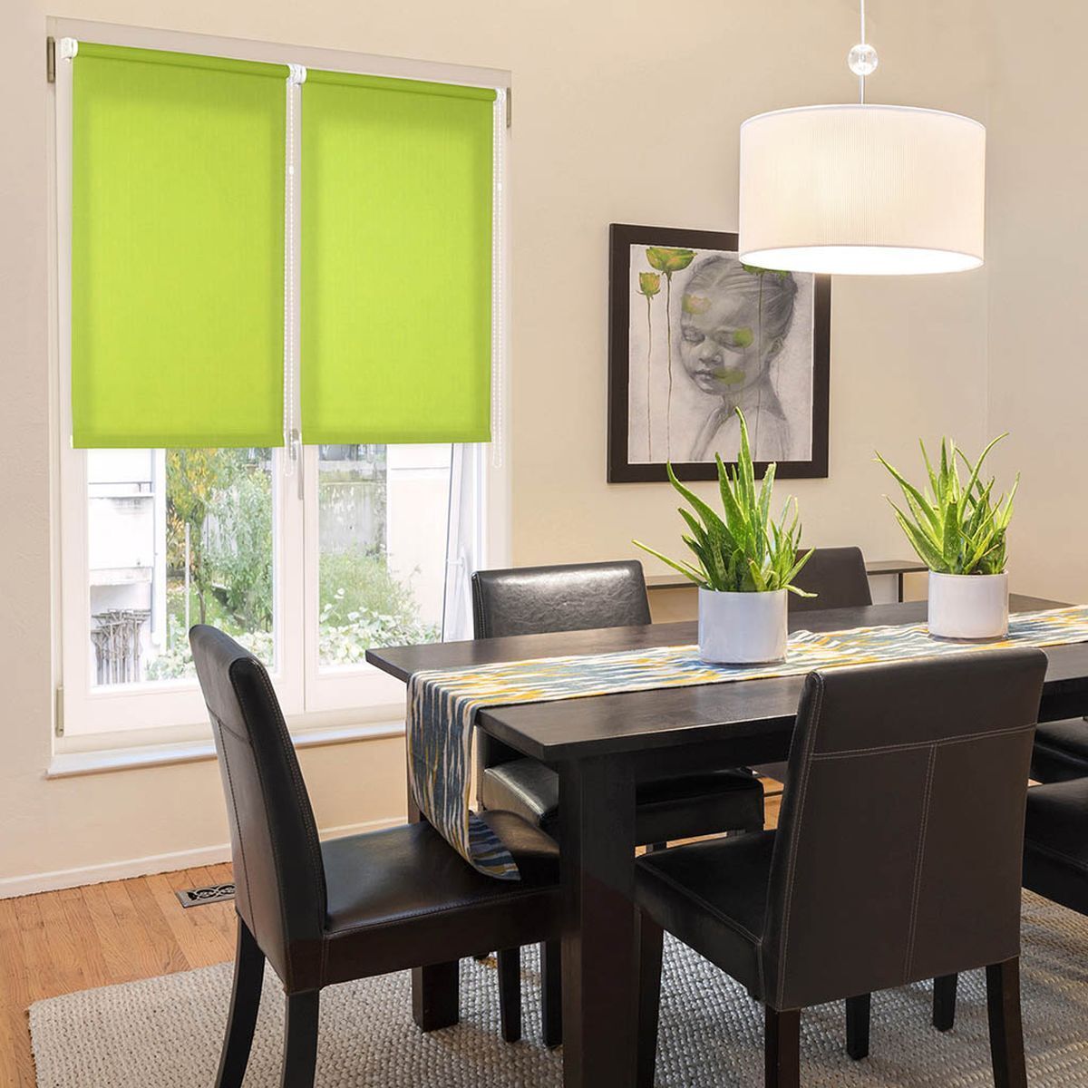 Штора рулонная регулирует освещение комнаты, опускается до любого желаемого уровня.
