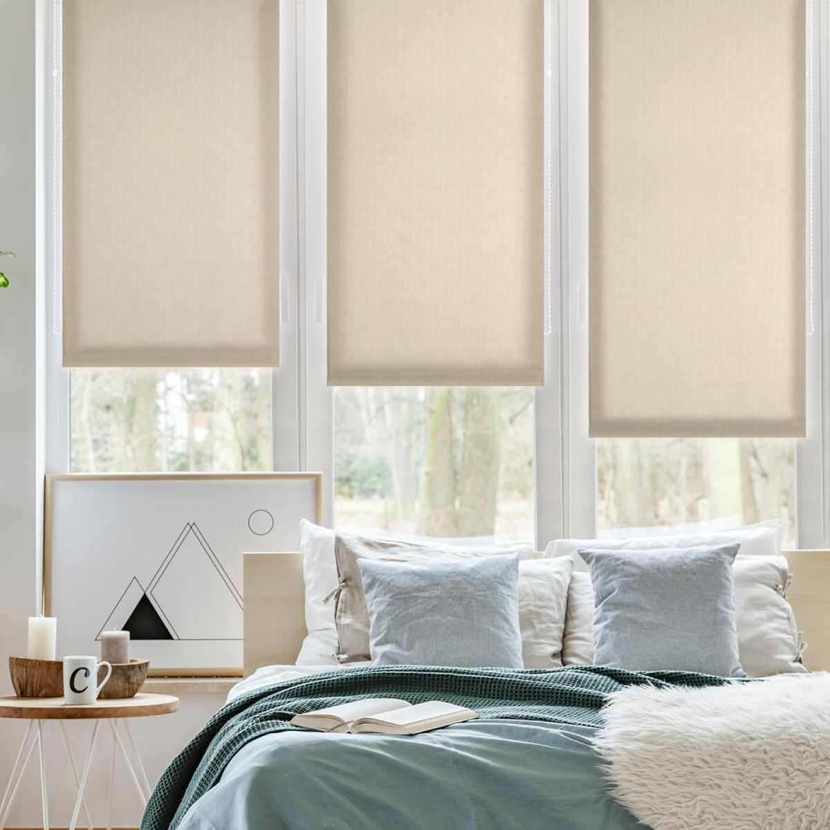 Штора рулонная регулирует освещение комнаты, опускается до любого желаемого уровня.