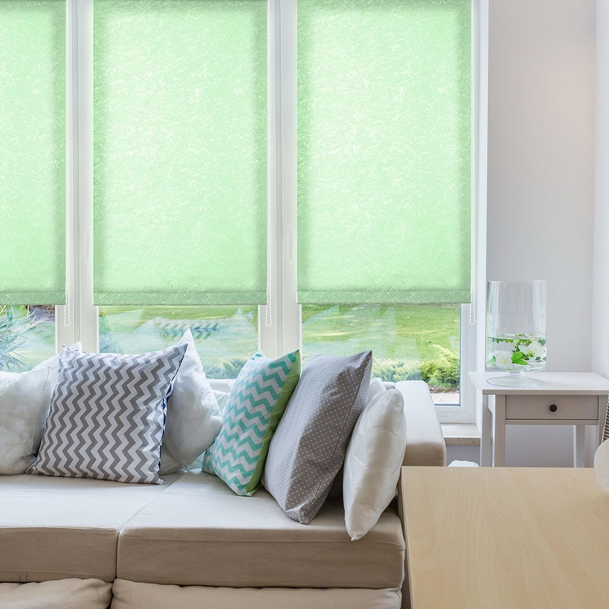 Специальная антистатическая пропитка ткани облегчает уход и защищает от пыли и загрязнений. Особые свойства ткани позволяют использовать рулонные шторы во влажных помещениях, таких, как кухня или ванная.