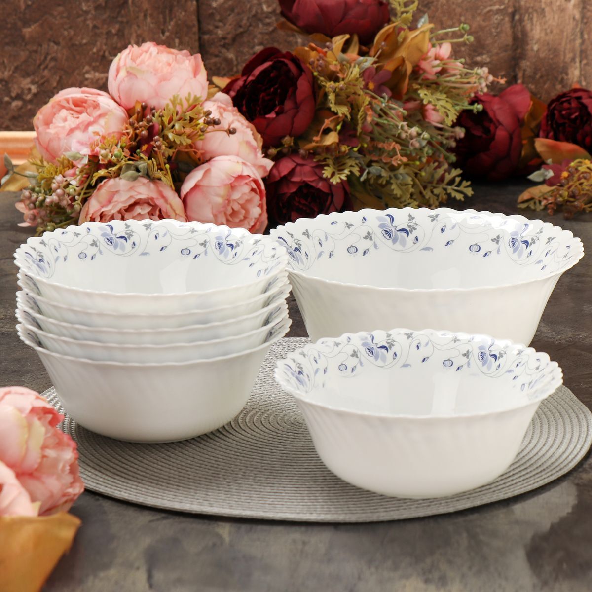 Состав набора: салатник большой 22,5 см (1100 мл); салатник малый 17,5 см (500 мл) - 6 шт.