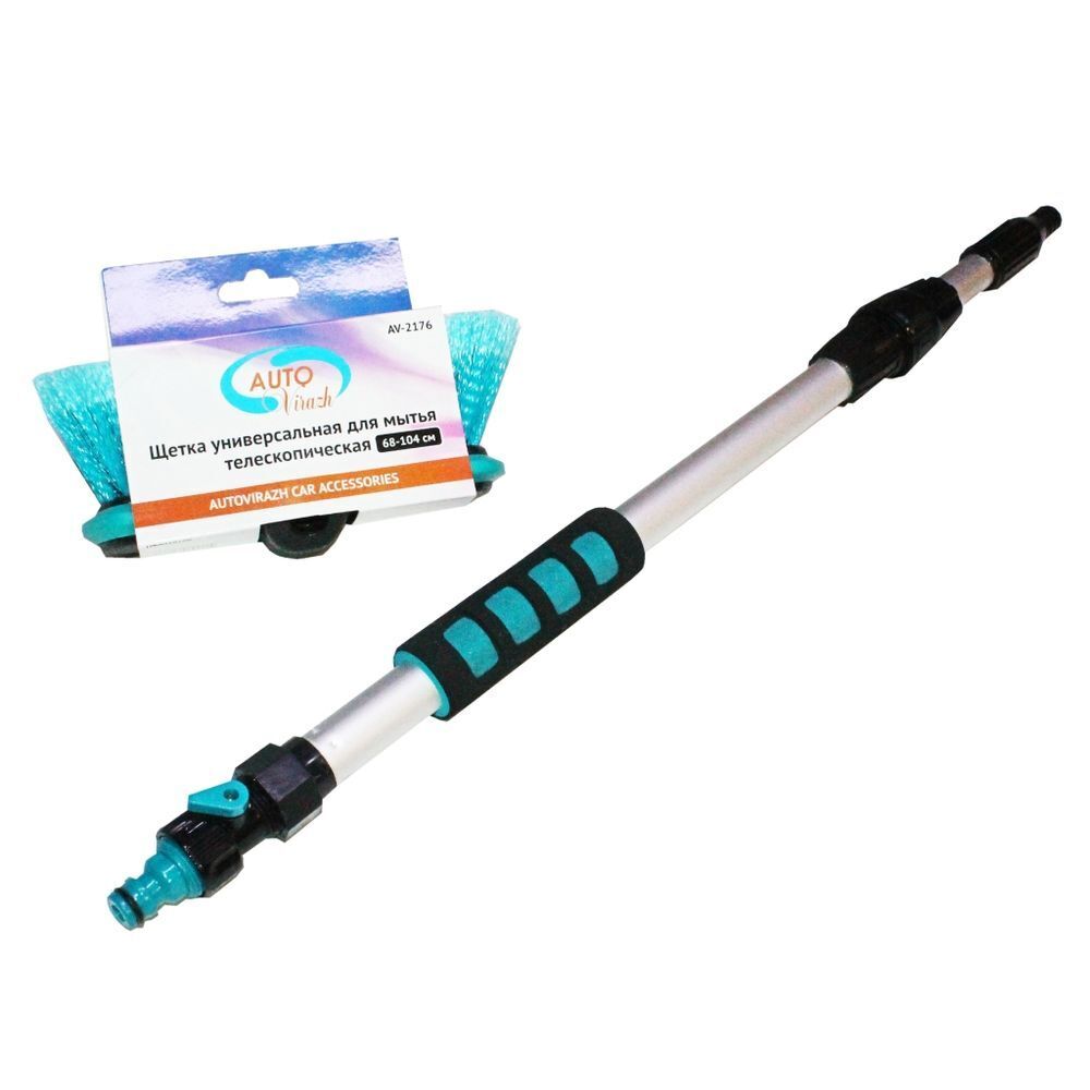 Телескопическая щетка для мытья с переходником AUTOVIRAZH AV-2176 меняет длину, что позволяет без особого труда чистить автомобиль с минимального количества позиций. Легкая рукоять и мягкая щетина существенно упрощают эксплуатацию изделия.