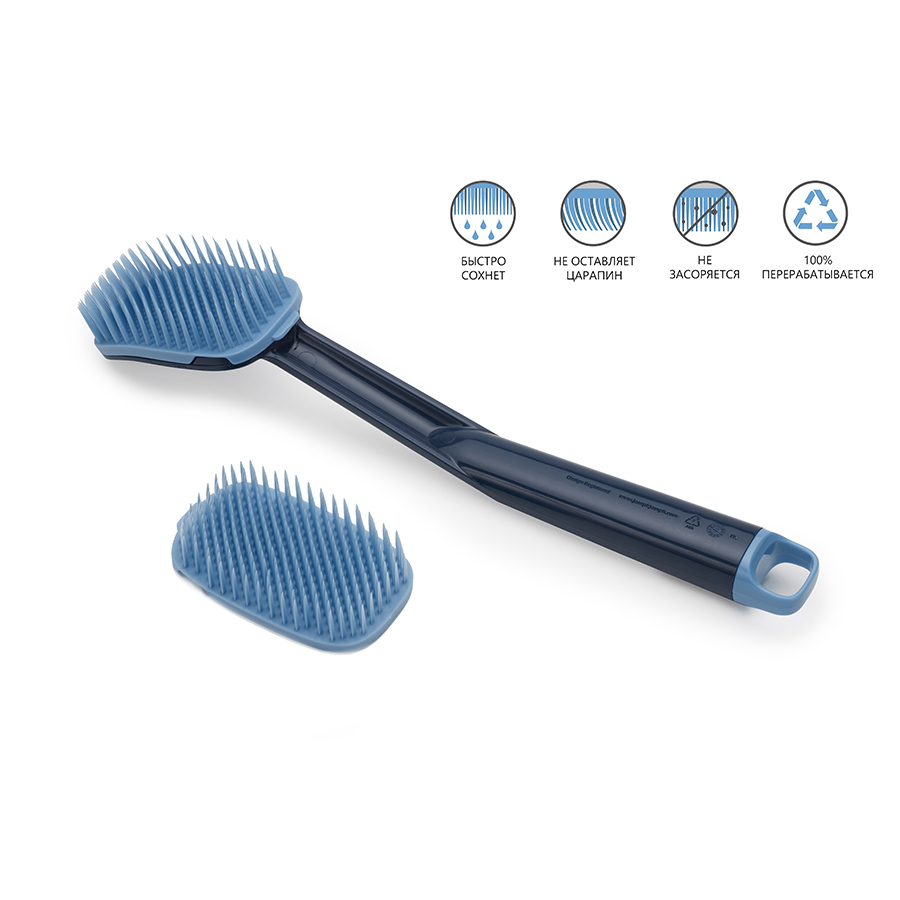 Полимерная щетина не дает скапливаться грязи, не впитывает воду и быстро сохнет. Щетка эффективно очищает любые загрязнения даже с антипригарной посуды.