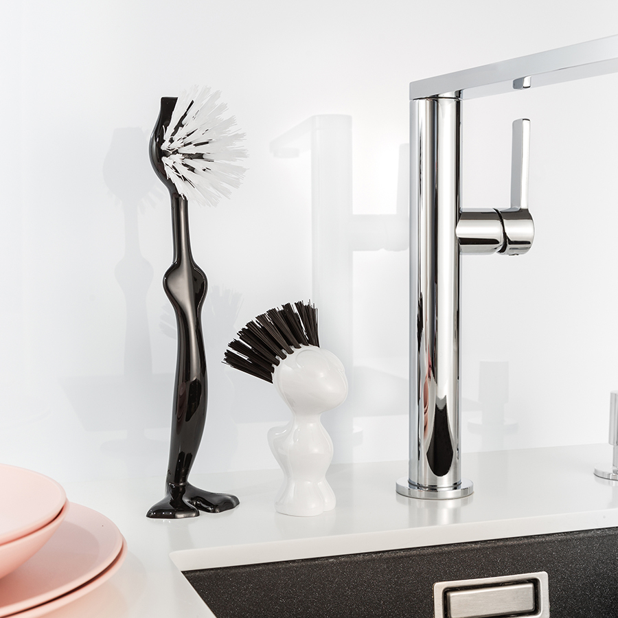 Для щётки TIM не потребуется органайзер, ведь её можно просто поставить на ножки. В таком положении она моментально сушится и не занимает много места на кухне. Особенности: - удобные ножки - оборудована скребоком для посуды - не содержит меламин Производство: Германия