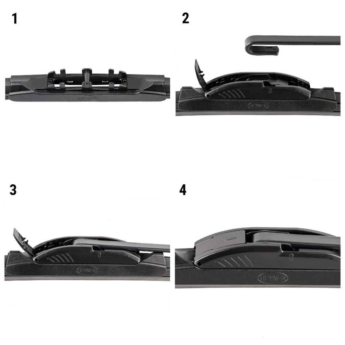Щетка стеклоочистителя Heyner устанавливается на различные марки автомобилей при помощи специальных адаптеров. Преимущество изделия заключается в универсальности: щетка эффективно работает в любую погоду, в том числе и зимой. Резина остается мягкой, плотно прилегает к стеклу, не оставляет следов и царапин.
