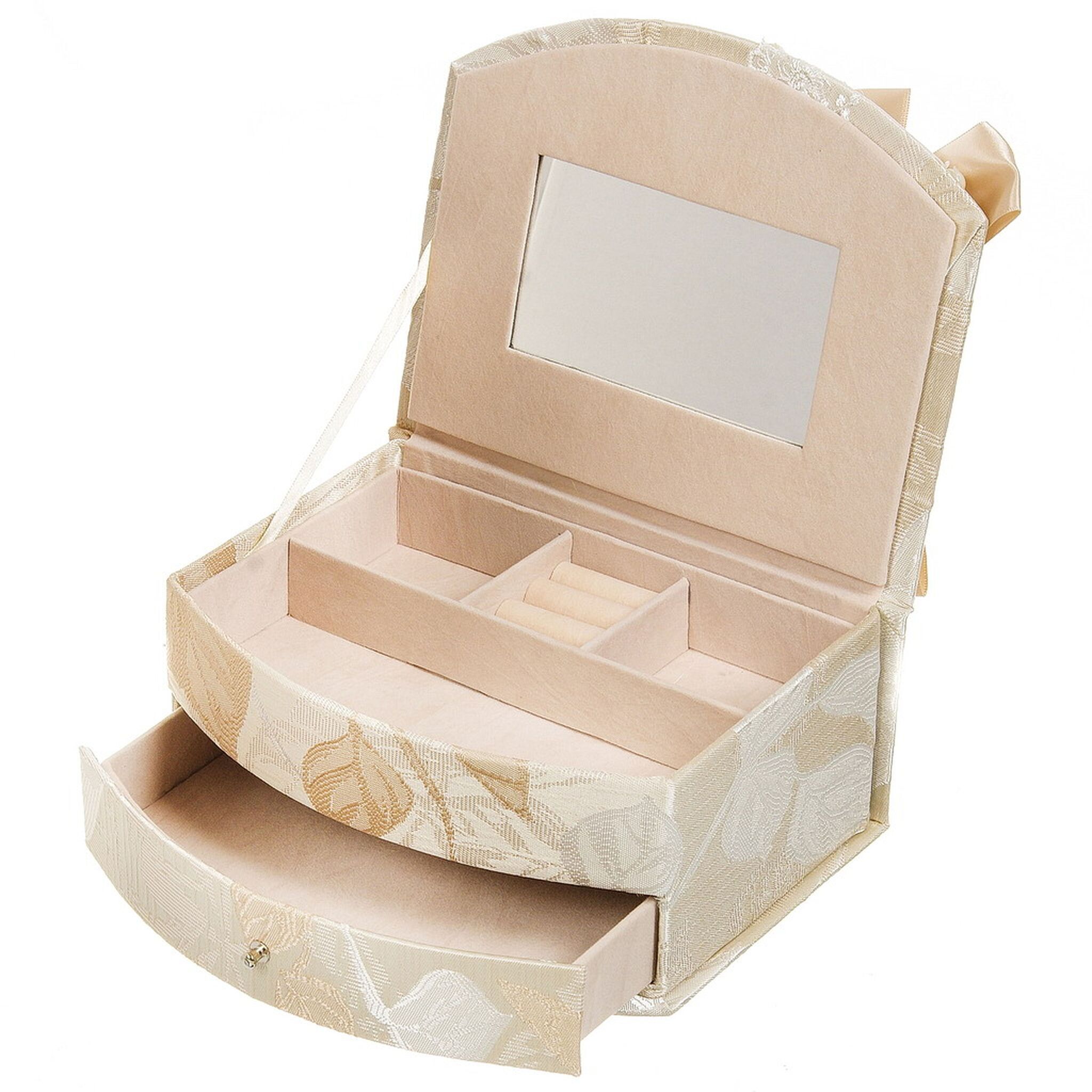 Шкатулка для украшений, текстиль, 21.5х16.5х9 см, с зеркалом, беж, Y6-2450