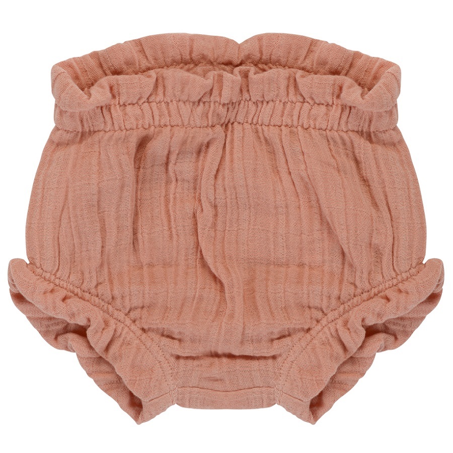 Шорты для новорожденных из хлопкового муслина цвета пыльной розы из коллекции Essential лаконичного дизайна и базовой расцветки легко сочетать с другой одеждой. Они подойдут и мальчикам, и девочкам. Широкая мягкая резинка на талии и тонкие резинки на ножках обеспечивают хорошую посадку и формируют красивые сборки.
