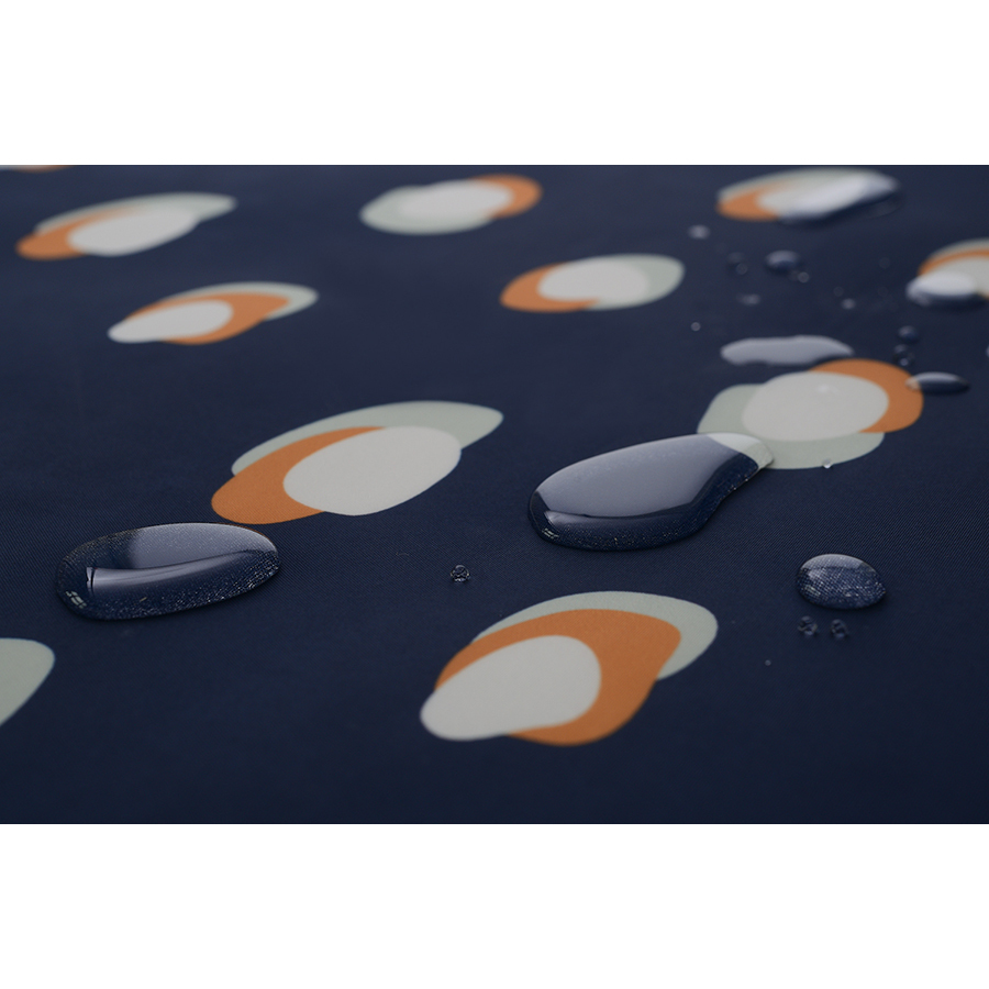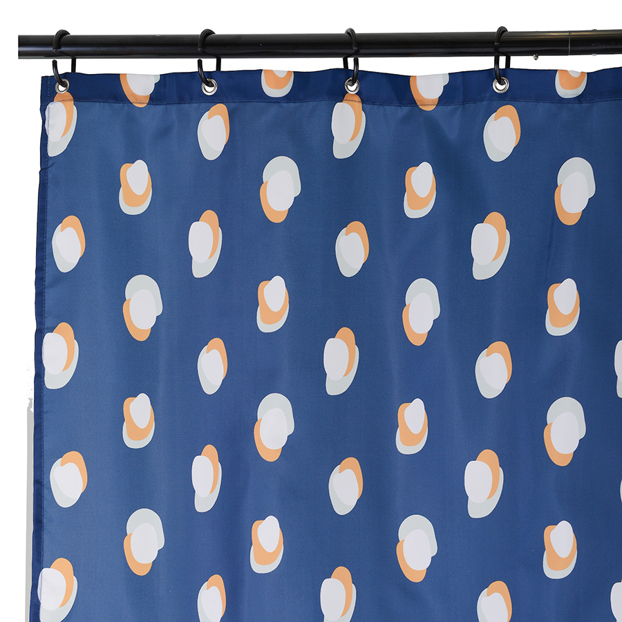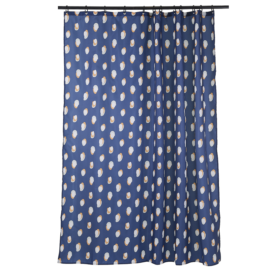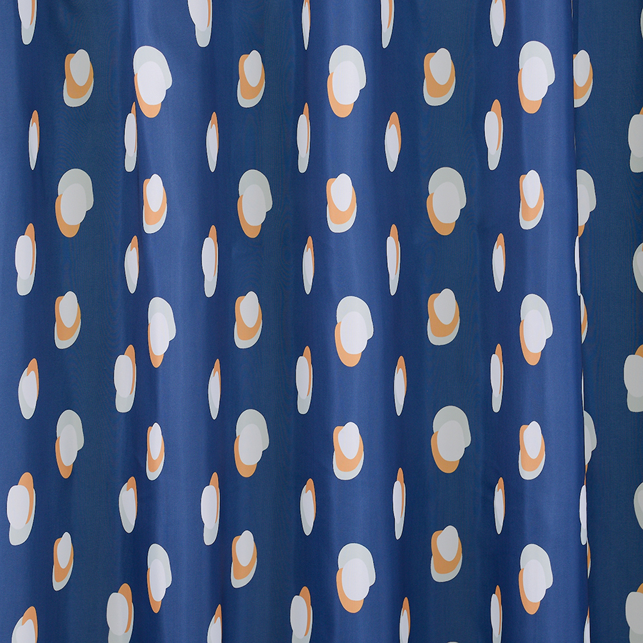 Штора для ванной темно-синего цвета из коллекции Wild с принтом Sun Spots станет акцентом в ванной комнате благодаря яркому стильному дизайну.