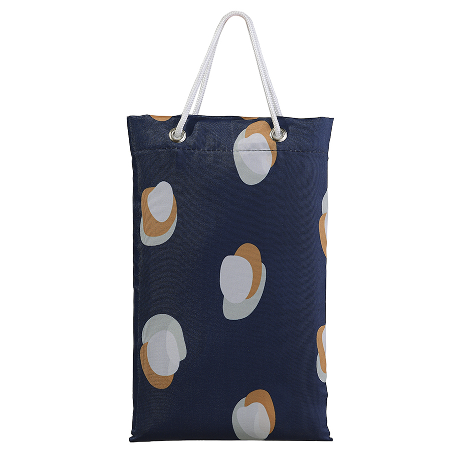 Изделие выполнено из полиэстера с водоотталкивающей пропиткой, поэтому хорошо защищает от брызг. Штора поставляется в стильной упаковке-сумочке с таким же принтом. Кольца для шторы не входят в комплект. Плотность ткани - 90GSM.