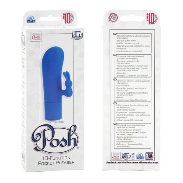 Синий вибромассажер с клиторальным стимулятором серии Posh