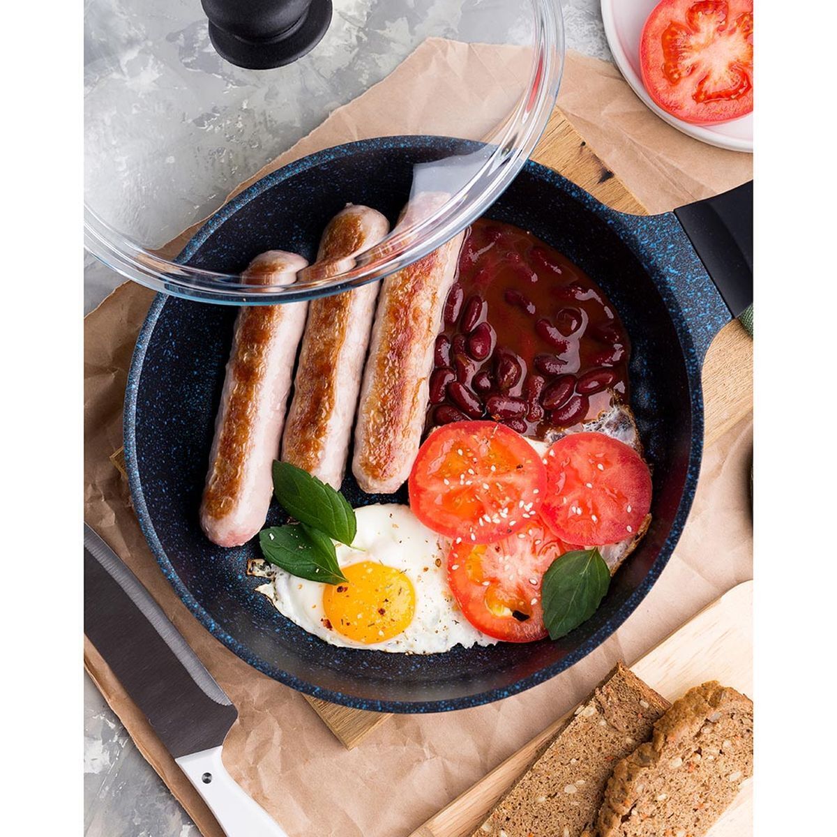 Сковорода выполнена литьем вручную из пищевого алюминия и имеет сверхпрочное семислойное антипригарное покрытие, безопасное для здоровья. Антипригарное покрытие обладает высокой прочностью к истиранию, что увеличивает срок службы сковороды в 5 раз. Форма сковороды обеспечивает устойчивость к деформации при длительном использовании. Дно оптимальной толщины 5 мм способствует равномерному распределению тепла для наилучшего приготовления ваших блюд. Сковорода имеет удобную ручку, которая не нагревается при эксплуатации. Посуда легко и быстро моется благодаря гладкой непористой поверхности. Сковорода не содержит PFOA, при нагревании не выделяются вредные токсичные и канцерогенные вещества.