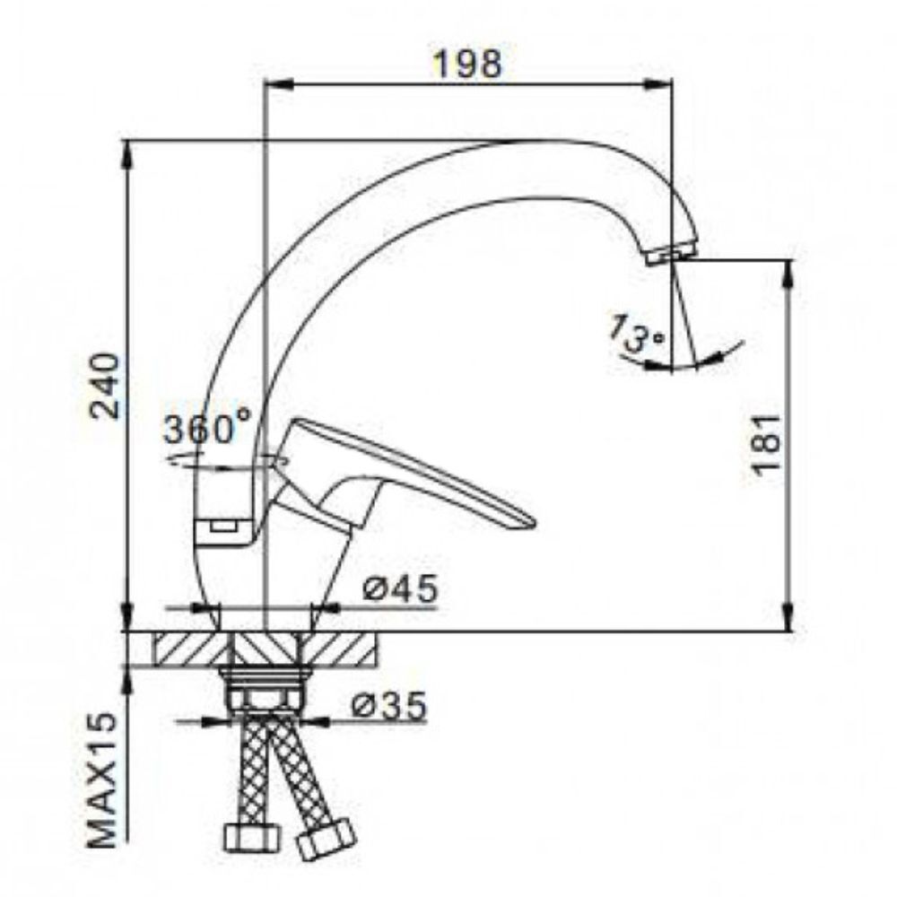 Тип подводки: гибкая 1/2" (в комплекте).
