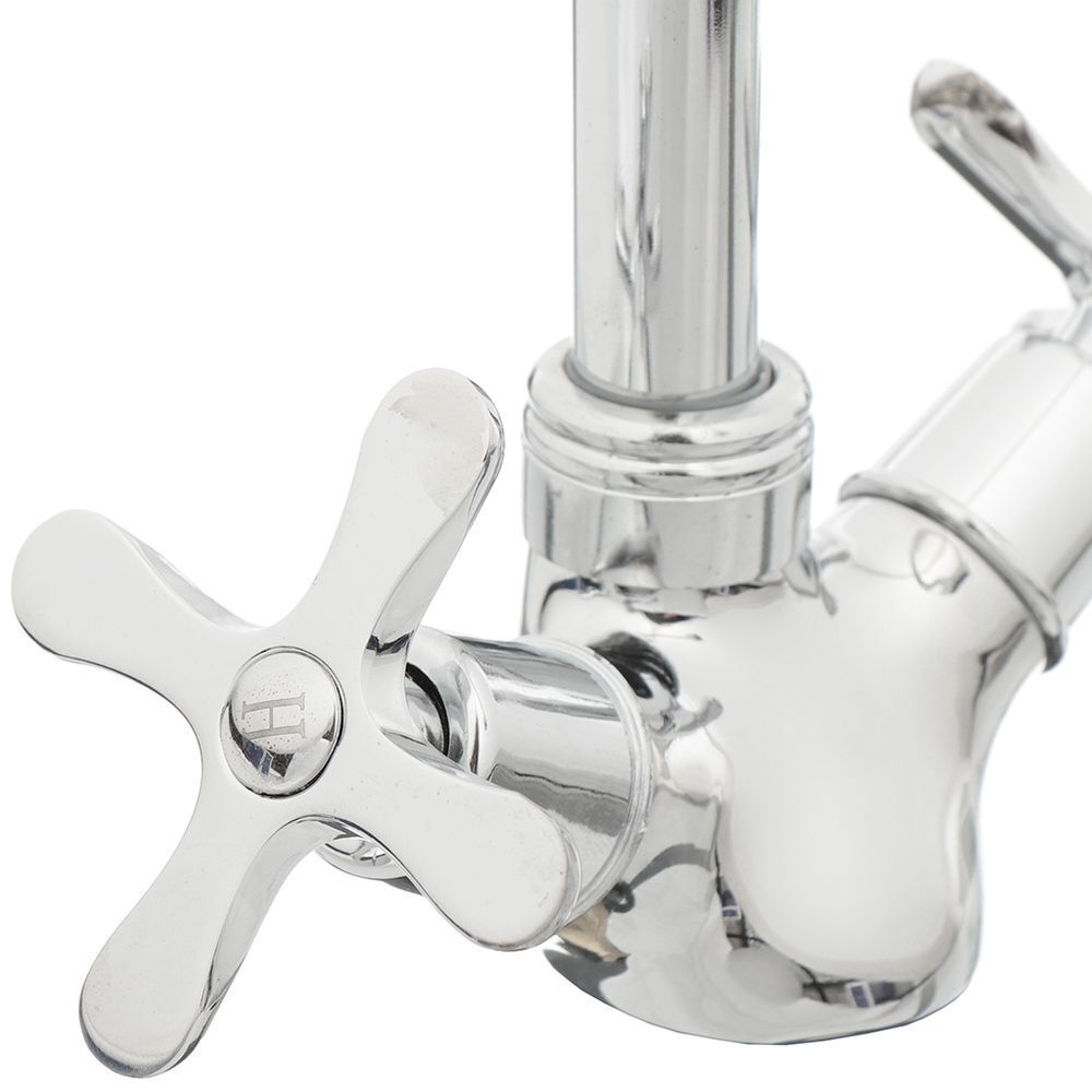 Очарование двухвентильных смесителей Frud, выполненных в ретро стиле из белого металла с хромом, невозможно не оценить. Превратить ежедневную процедуру приготовления еды в истинное наслаждение, можно дополнив интерьер кухни изящным смесителем из этой коллекции.