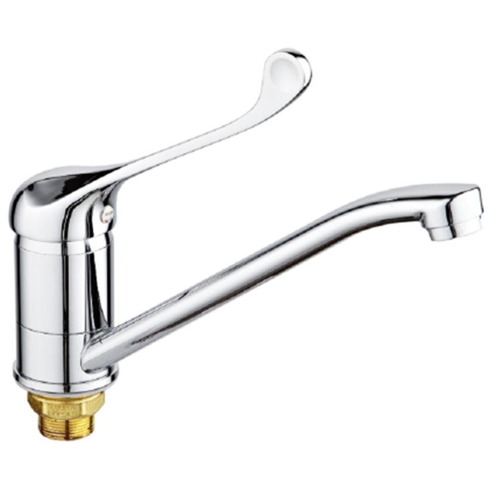 Смеситель с длинным поворотным изливом "РМС" устанавливается на кухонную мойку. Изделие изготовлено из высококачественной первичной латуни, прочной, безопасной и стойкой к коррозии. Отличительной особенностью данной модели является наличие медицинской ручки.