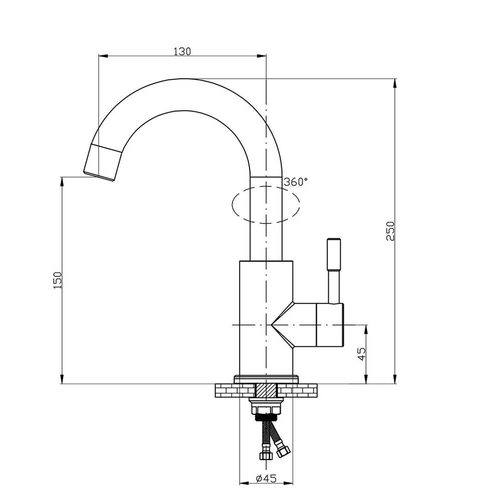 В комплекте: гибкая подводка из нержавеющей стали