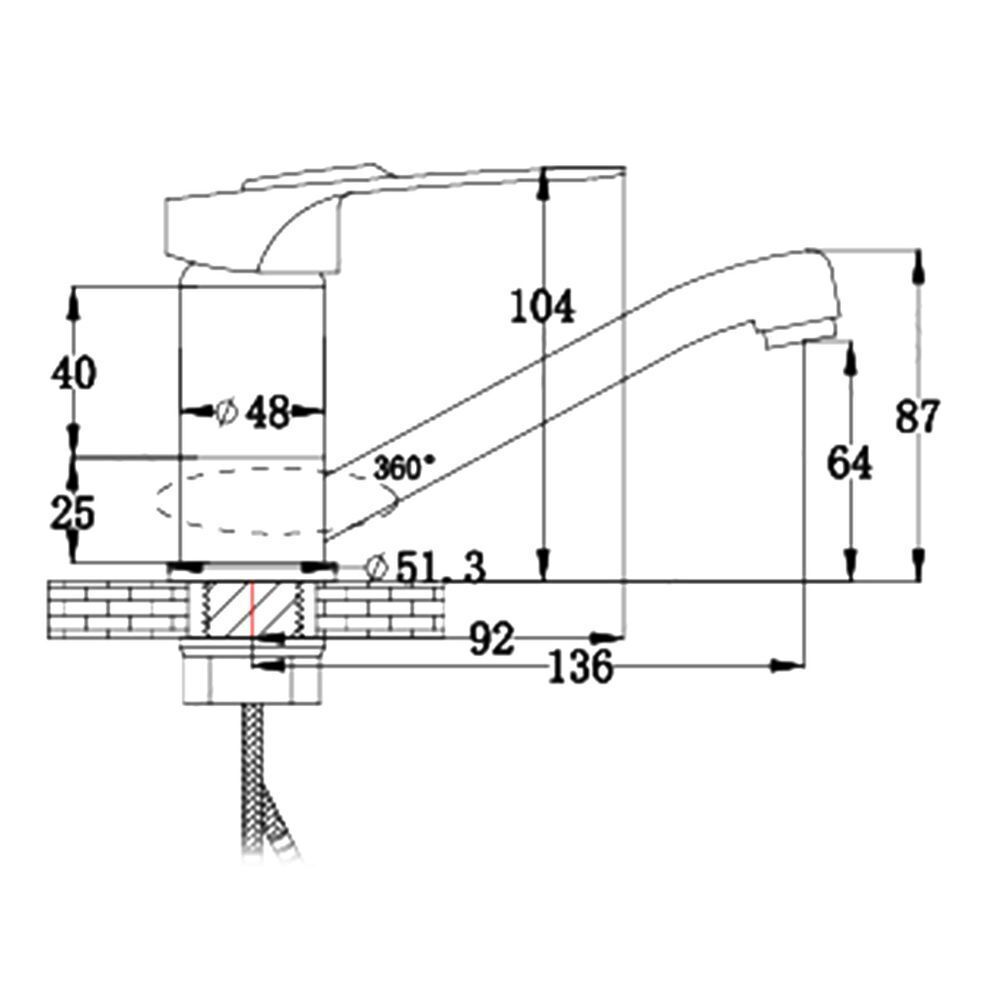 Смеситель находится в закрытом состоянии, если ручка опущена до отказа. Поднятием ручки регулируется напор воды, а поворотом ручки достигается регулирование степени температуры воды.