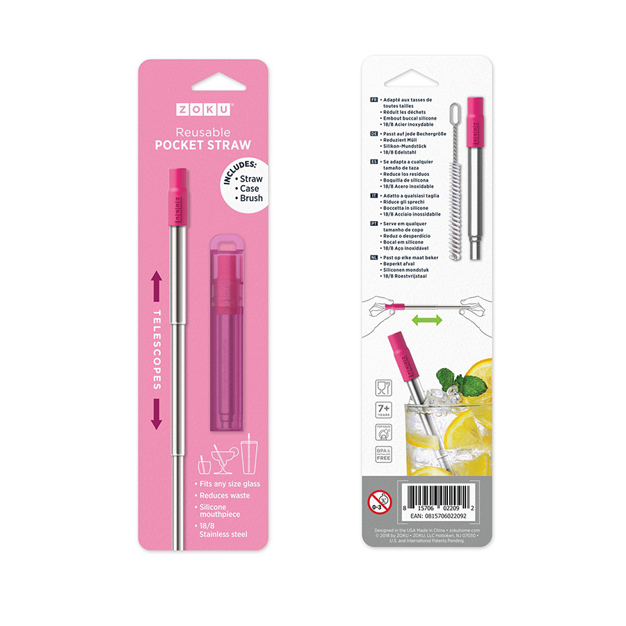 Многоразовая складная соломинка поможет наслаждаться любимыми напитками дома и на прогулке. Изделие выполнено из нержавеющей стали, устойчивой к коррозии и пищевым кислотам. В комплект входит практичная щетка для чистки соломинки. Аксессуар можно мыть в посудомоечной машине и удобно хранить в специальном кейсе с петлевым отверстием для крепления к сумке или ключам.