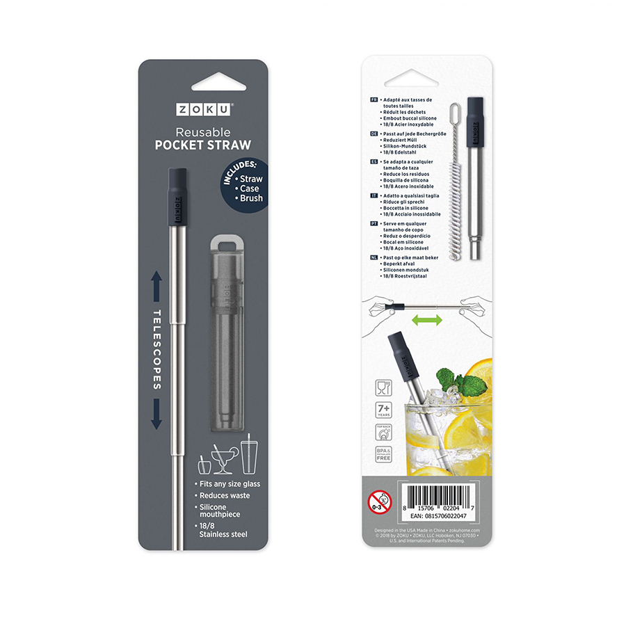 Многоразовая складная соломинка поможет наслаждаться любимыми напитками дома и на прогулке. Изделие выполнено из нержавеющей стали, устойчивой к коррозии и пищевым кислотам. В комплект входит практичная щетка для чистки соломинки. Аксессуар можно мыть в посудомоечной машине и удобно хранить в специальном кейсе с петлевым отверстием для крепления к сумке или ключам.
