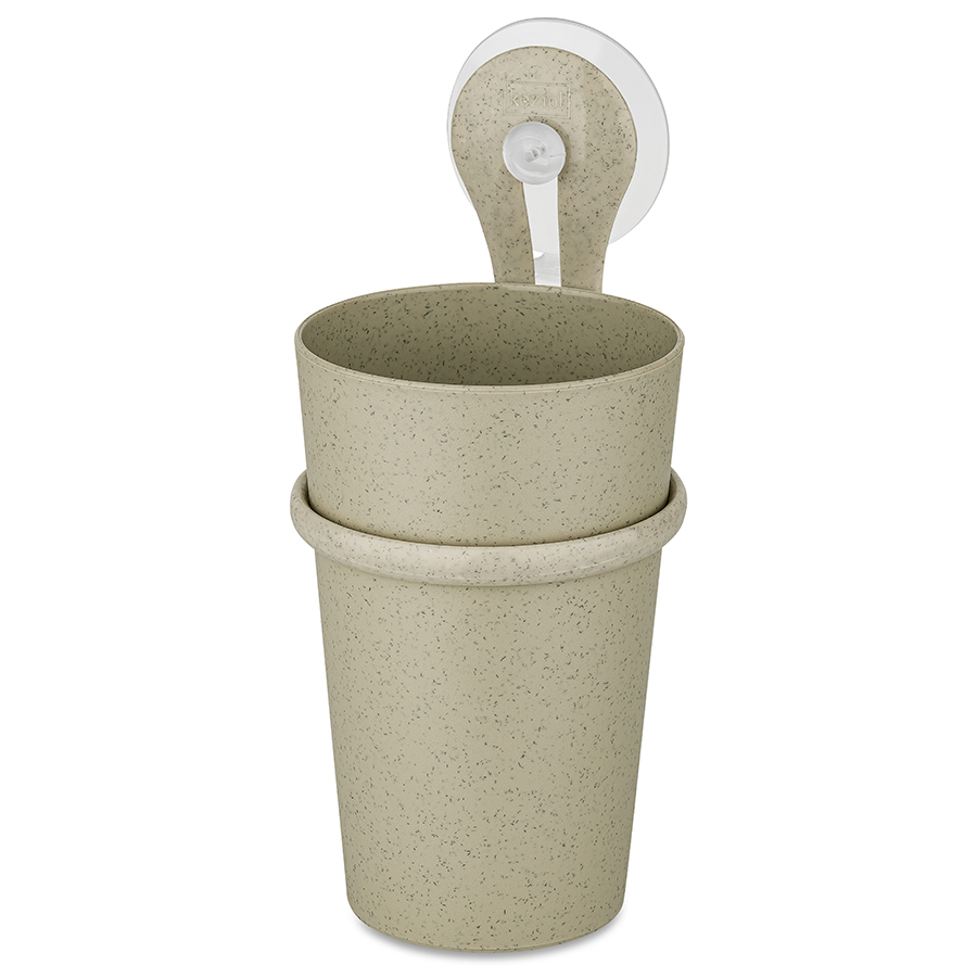 Изделие крепится к стене на присоску, которая входит в комплект. Стакан легко снимается с держателя.