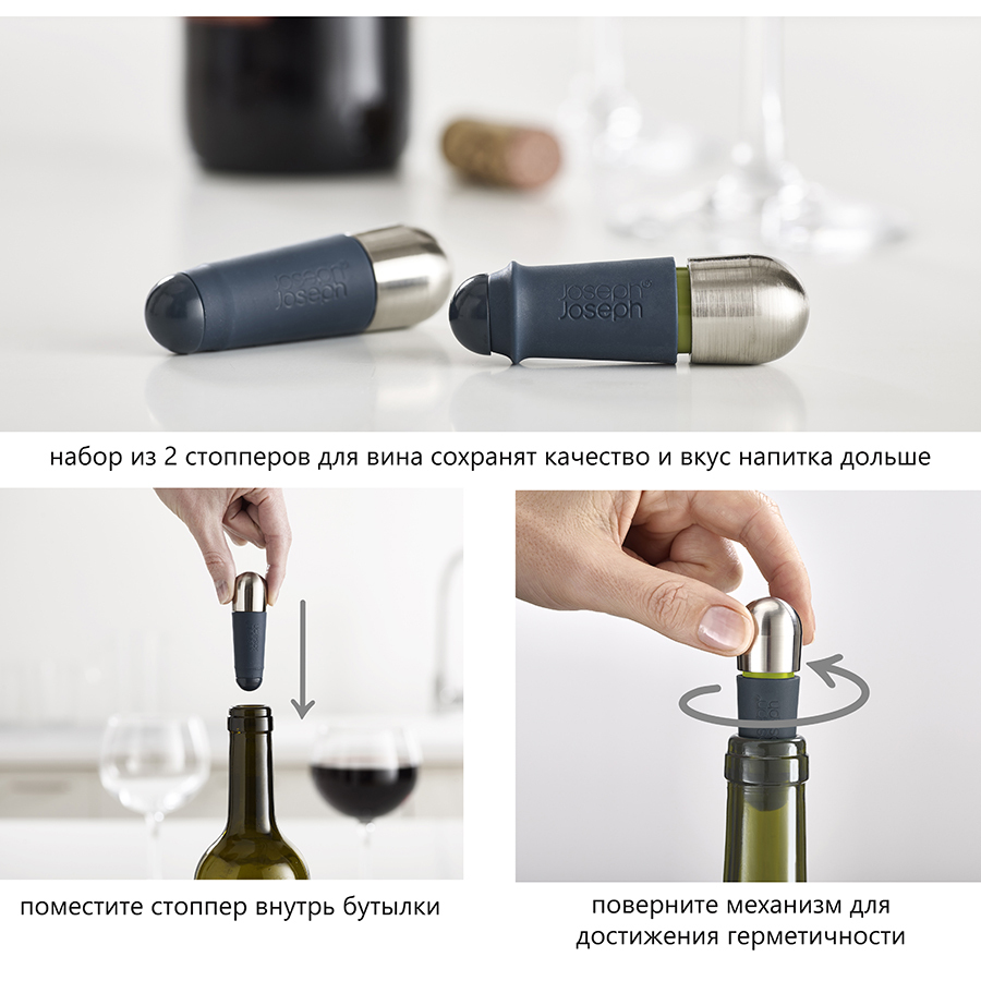 Винный стоппер BarWise – идеальное решение для хранения незавершенной бутылки любимого напитка. Стильная пробка сохранит качество и вкус вина дольше благодаря наличию силиконового уплотнения. Стоппер образует полную герметичность при закручивании механизма в основание горлышка. Чтобы открыть бутылку достаточно повернуть пробку за стальной колпачок в обратном направлении. В набор входит 2 винные пробки. Изделия не подходят для повторного запечатывания бутылок игристого вина, шампанского или газированных напитков. Стопперы рекомендуется мыть вручную.