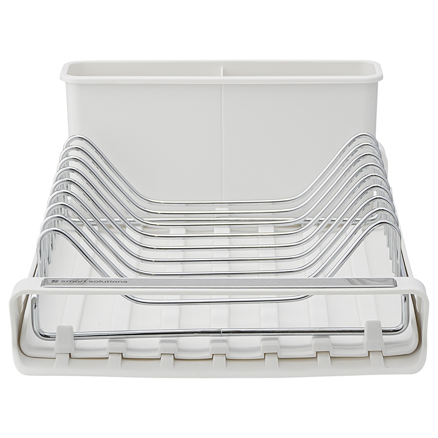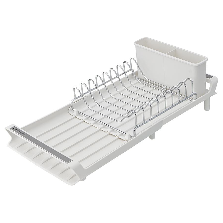 Сушилка Atle – компактная, но в то же время вместительная модель с раздвижной конструкцией, в которой предусмотрены отделения для посуды и кухонных принадлежностей. Удобное размещение и надежную фиксацию тарелок и других емкостей обеспечивают железные разделители. Поддон выполнен из практичного полипропилена, который легко моется. Стальные элементы на корпусе имеют специальное покрытие против отпечатков пальцев. Настольную сушилку можно размещать в любом месте и для ее установки не требуется делать отверстия в стене.