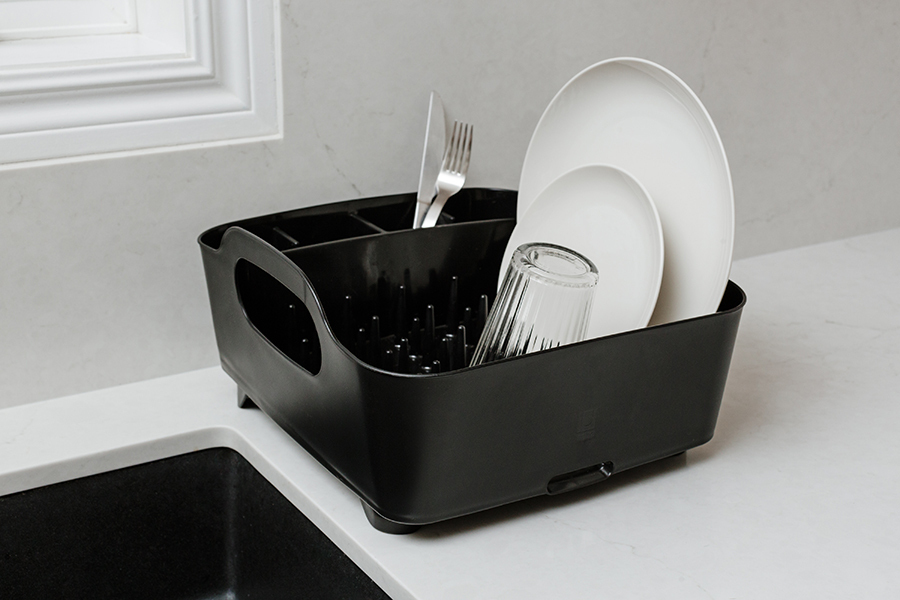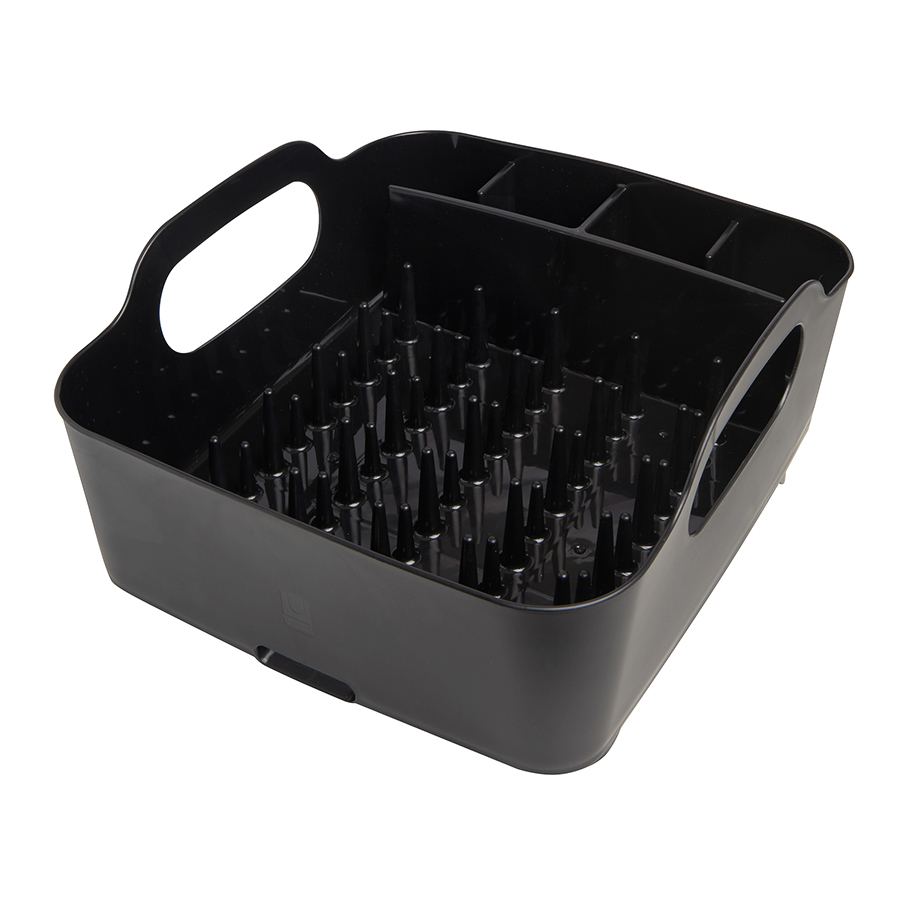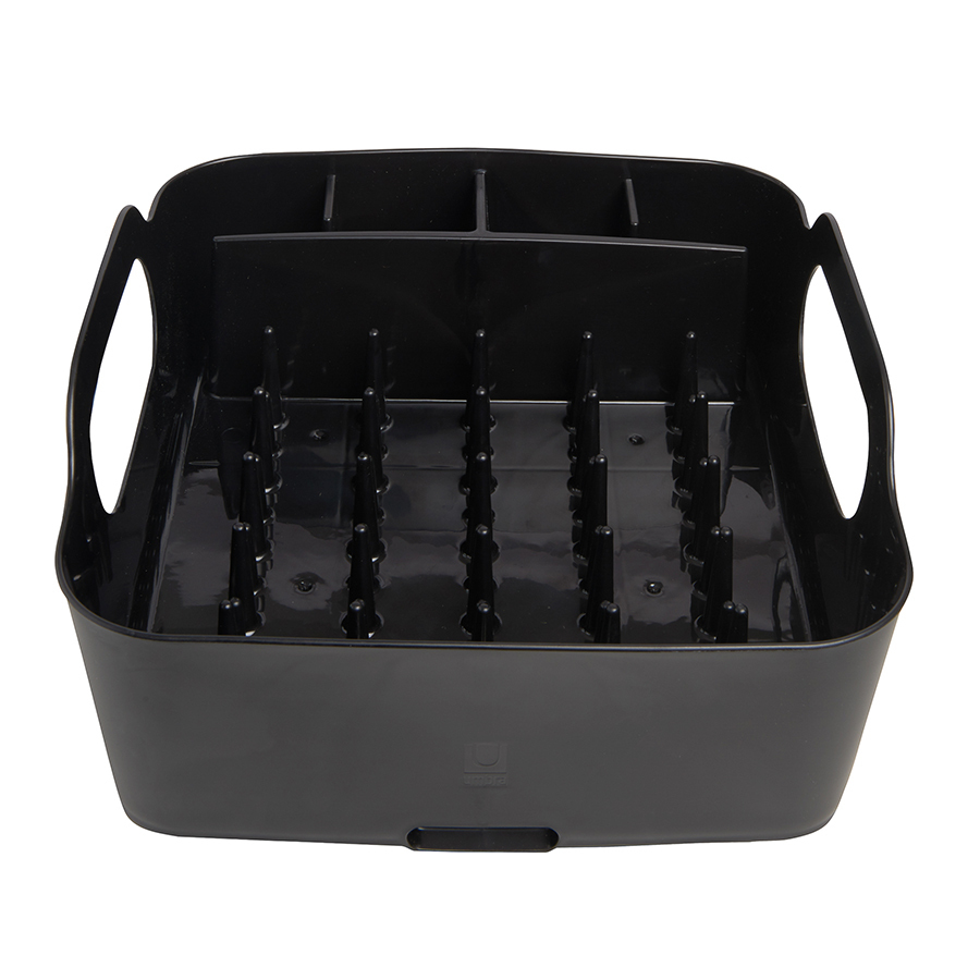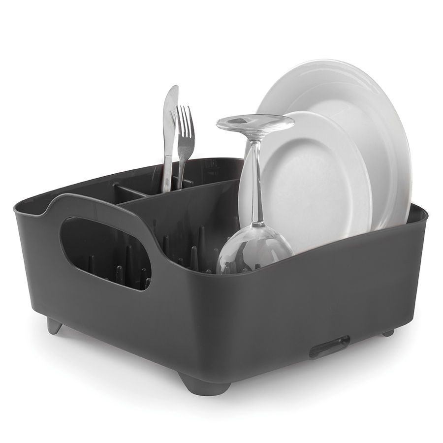 Мобильная сушилка для посуды состоит из пяти отделений: широкого — для сушки тарелок, чашек и сотейников и четыре маленьких для столовых приборов и аксессуаров. Выступы разной высоты на дне сушилки позволяют аккуратно расставить посуду. Это очень важный инструмент, так как Tub можно использовать и для компактного хранения. Благодаря ножкам и отверстию для слива, вода не будет застаиваться, что предотвратит появление неприятного запаха. Сочетается с другими аксессуарами для кухни в новой цветовой палитре: диспенсером Joey и органайзером Saddle. Дизайнер Rafael Urdaneta