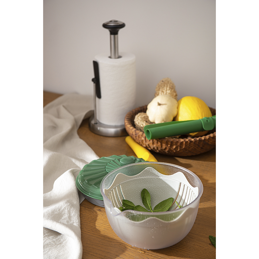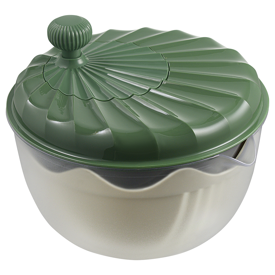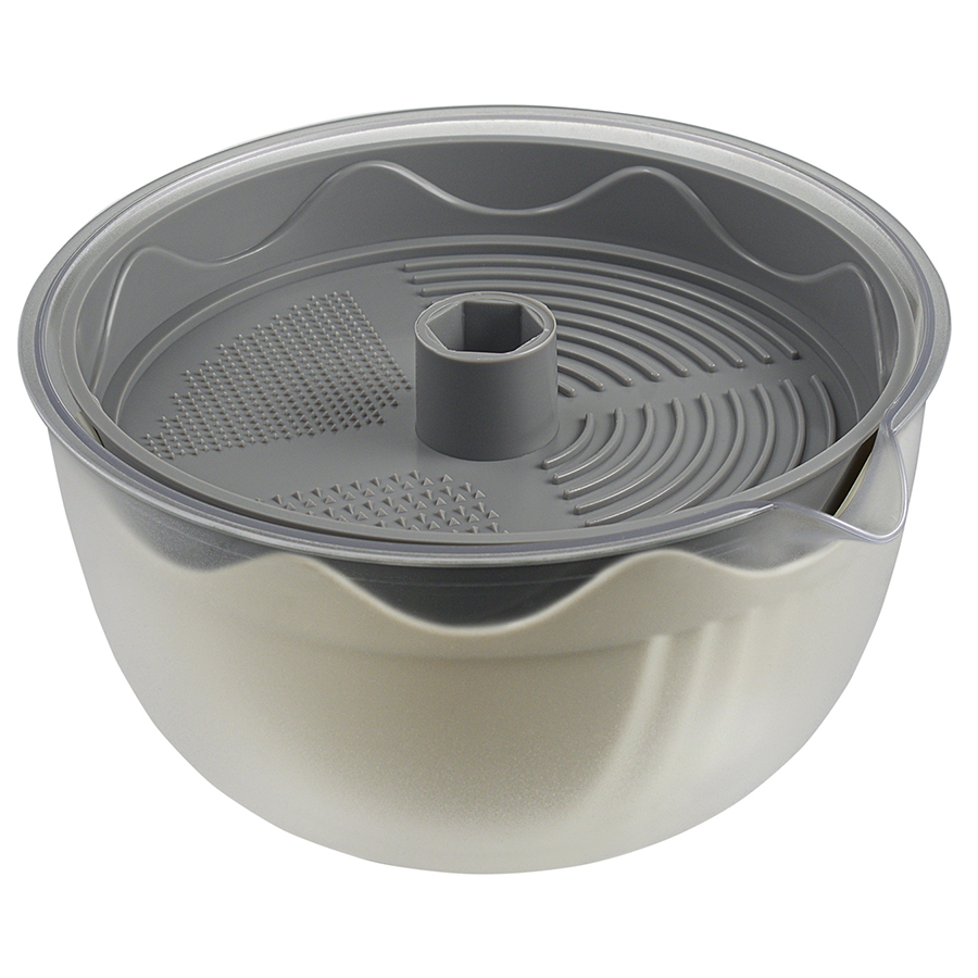 Емкость мультифункциональная Maiken идеально подходит для сушки, смешивания салата, а также для нарезки, измельчения и протирки овощей. Для сушки вымытые продукты необходимо поместить в контейнер, после чего накрыть крышкой со специальной рукояткой, вращение которой приводит в движение внутреннюю емкость с отверстиями, через которые удаляется лишняя вода. Для тщательного смешивания ингредиентов достаточно закрыть чашу крышкой и встряхнуть. Благодаря специальной конструкции съемные элементы могут использоваться в качестве терки и измельчителя.