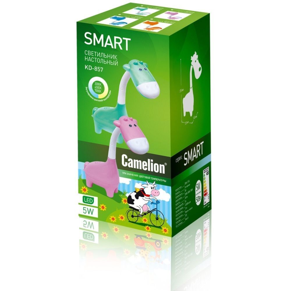 Настольный светильник Camelion «Коровка» станет настоящим украшением детской комнаты Вашего ребенка. Яркий корпус с регулируемым направлением светового потока выполнен из высокопрочных материалов, что гарантирует долгосрочность использования. Источник света представлен встроенными светодиодами максимальной мощностью 5 Вт. Цветовая температура регулируется в пределах 3200, 4500, 7000 К.