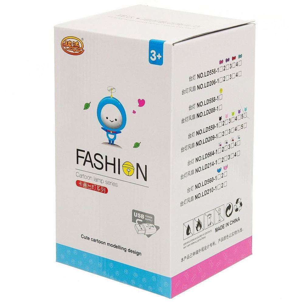 Работает в двух режимах: ночник или лампа, включаются по очереди с одной кнопки. Работает от встроенного аккумулятора. Заряжается через USB кабель от любого USB порта. Размер ночника 12х21см, высота 20см, размер светоэлемента лампы 10x10см. Голова фигурки ночника поворачивается на 180°, стойка лампы длиной 21см изгибается, позволяя направлять свет лампы в нужную сторону.