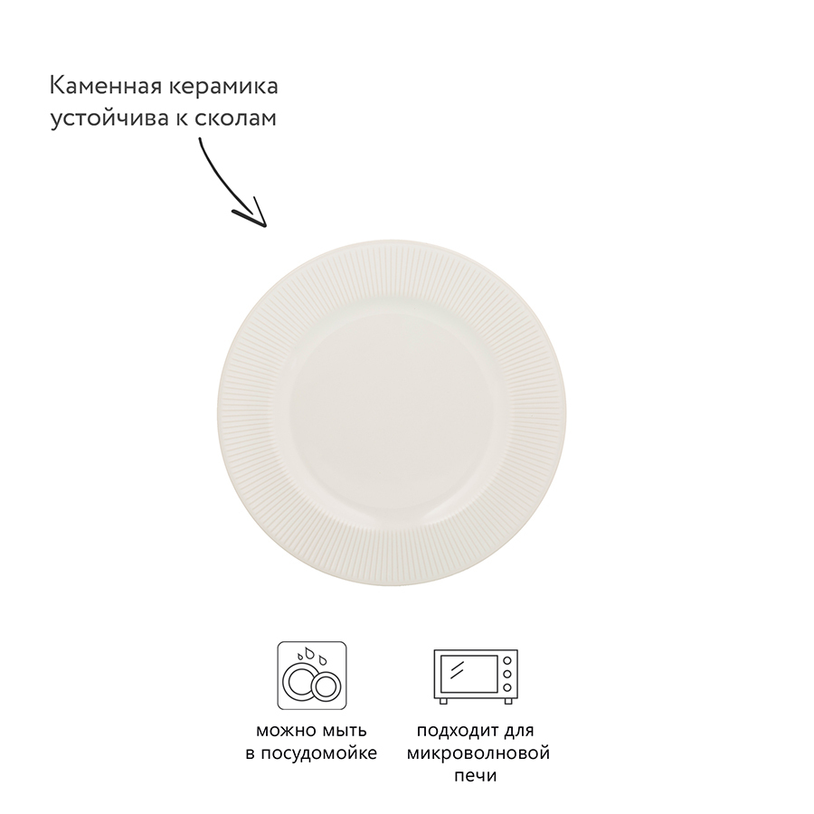 Тарелка выполнена из качественной каменной керамики, устойчивой к сколам и повреждениям.