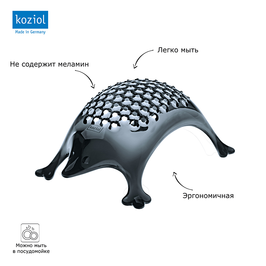 Терка для сыра KASIMIR – это эффектный и необычный аксессуар для современной кухни. Изделие представлено в виде изогнувшего спину ежа, стоящего на четырех лапках. Просто поставьте терку на стол и аккуратно потрите пармезан, гауду или любой другой сыр для вкусной пиццы, запеканок или пасты. Особенности: - эргономичность - легко моется, можно мыть в посудомоечной машине - не содержит меламин Производство: Германия
