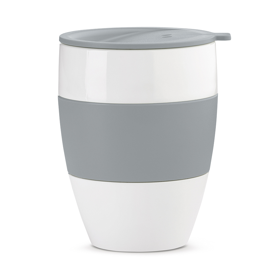 Термокружка AROMA TO GO из термопластика сохранит температуру горячего кофе, но при этом её поверхность не нагреется и не будет обжигать ладони. Плотная крышка не даст расплескать напиток. Особенности: - объем 400 мл - можно мыть в посудомоечной машине - можно разогревать напитки в микроволновой печи без крышки до 60 градусов. - не содержит меламин Производство: Германия