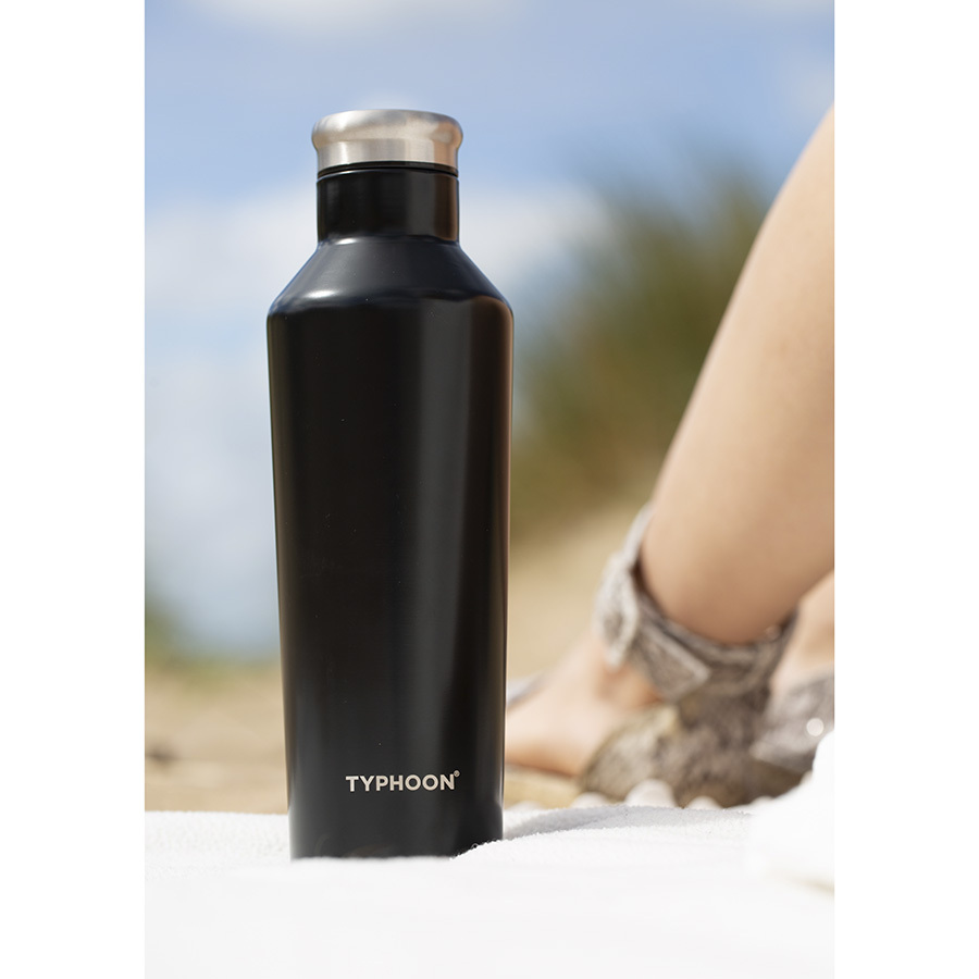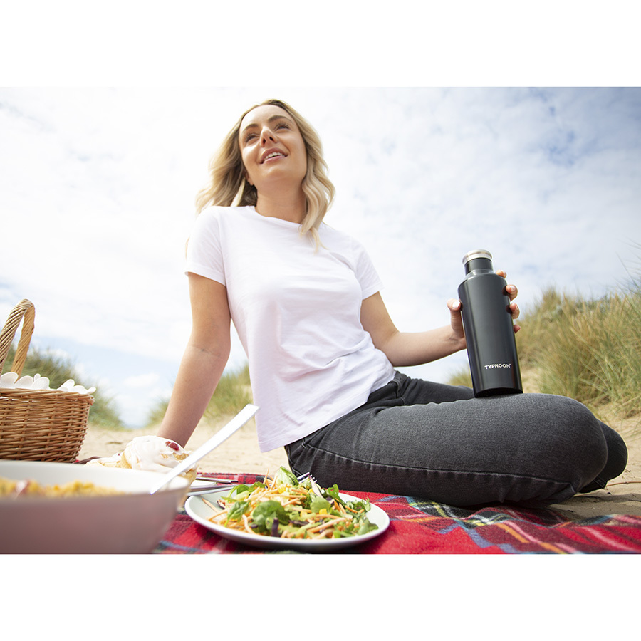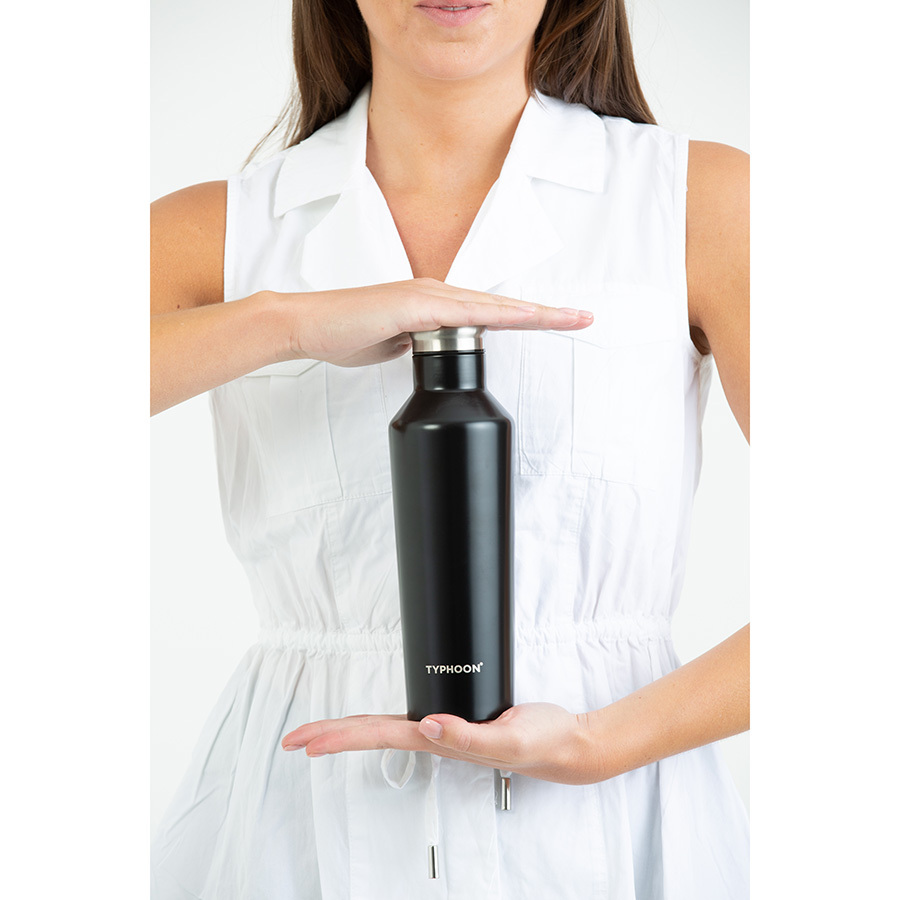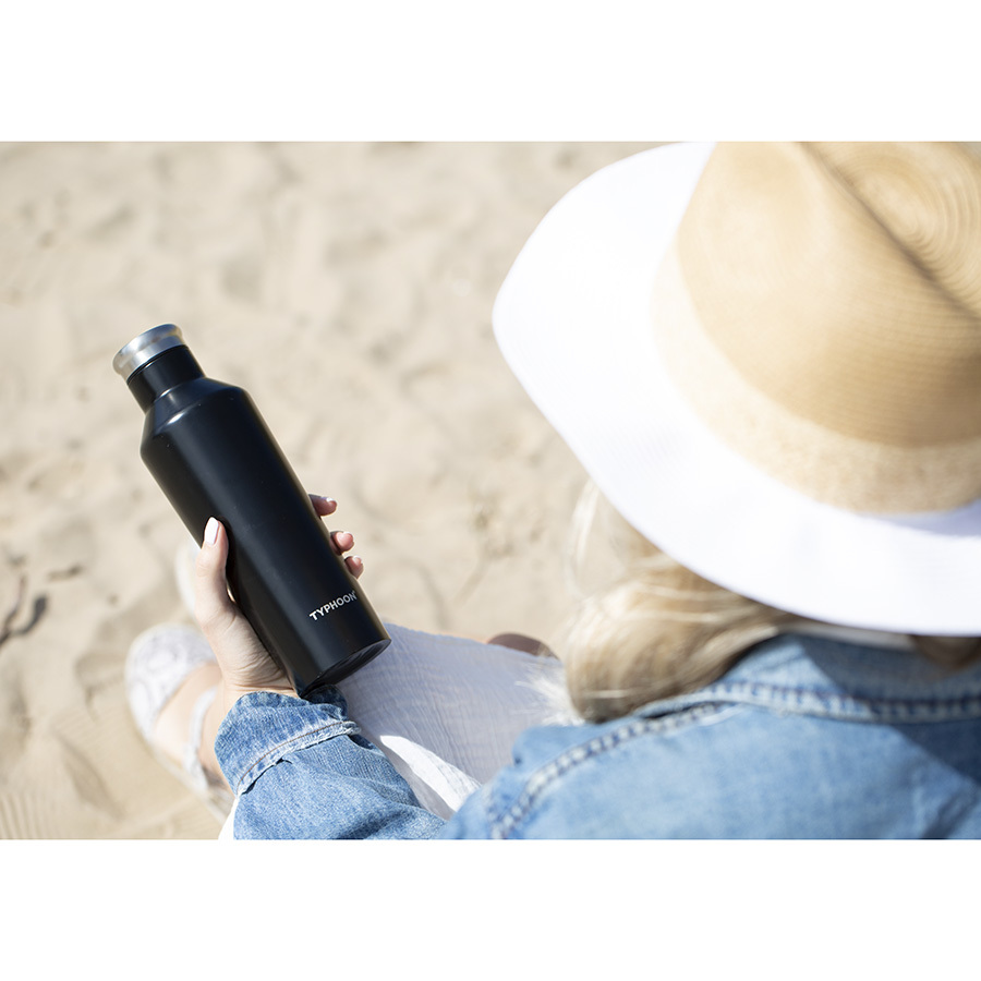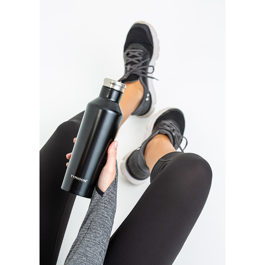 Двойной корпус бутылки держит температуру горячих напитков до 12 часов и холодных — до 24. Термос из нержавеющей стали устойчив к механическим повреждениям. Стальная крышка обеспечивает полную герметичность и исключает риск проливания. В широкое горлышко удобно класть кубики льда. Материал не содержит вредный бисфенол-А, он полностью безопасен для здоровья.
