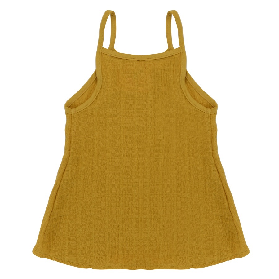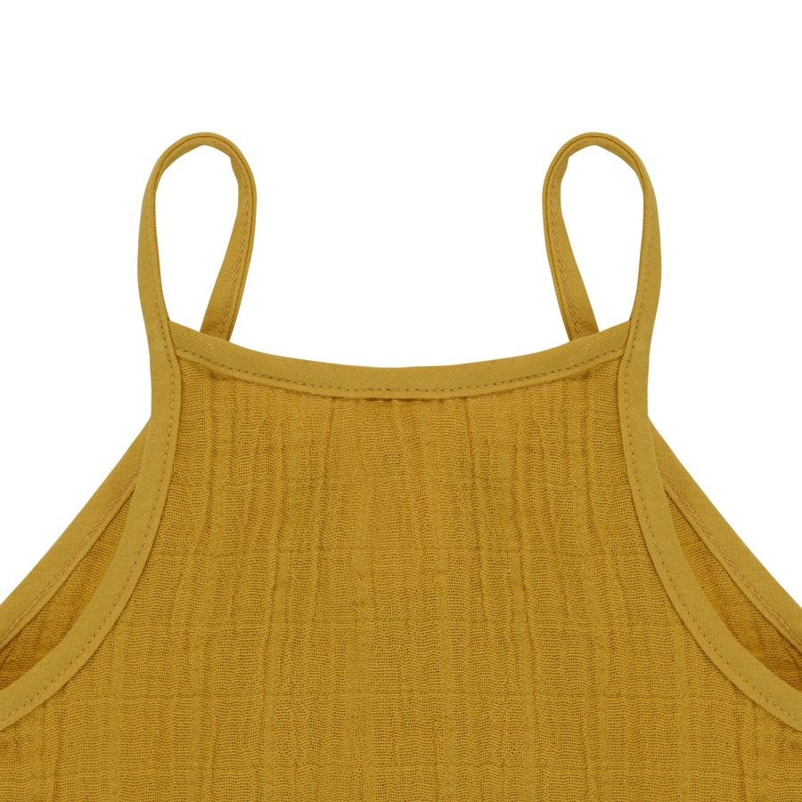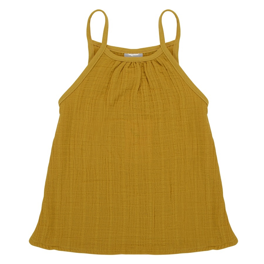 Топ из хлопкового муслина горчичного цвета из коллекции Essential выполнен в лаконичным дизайне и будет легко сочетаться с другой одеждой. Благодаря тонким бретелям и отсутствию застежек топ легко надевать и снимать. Можно дополнить шортами или штанишками из этой же коллекции.