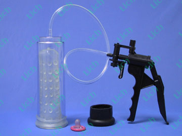 Вакуумный массажер-помпа для мужчин. Создает хорошую степень разрежения в колбе за счет удобного ручного механизма выкачивания воздуха. Силиконовая насадка с мягкими шишечками внутри колбы дополнительно стимулирует половой член и способствует возникновению более полной эрекции. В комплекте прилагается насадка на помпу из латекса, которая сделает использование помпы еще более приятным. Длина: 21 см Диаметр: 6,5 см.