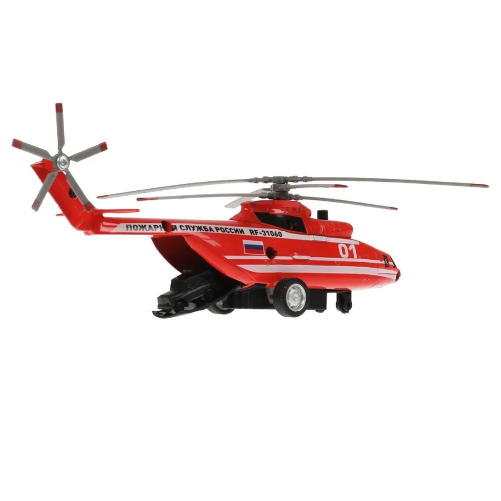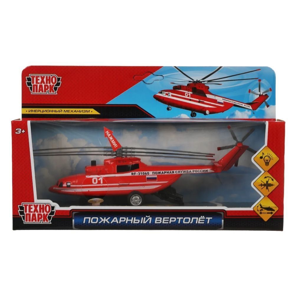 Игрушка металлическая Вертолет пожарный Технопарк. Пожарный вертолет, красного цвета, для мальчика. Игрушка очень реалистично выглядит. У него подвижные детали, есть люк. Игрушка из качественного гипоаллергенного пластика порадует вашего малыша.