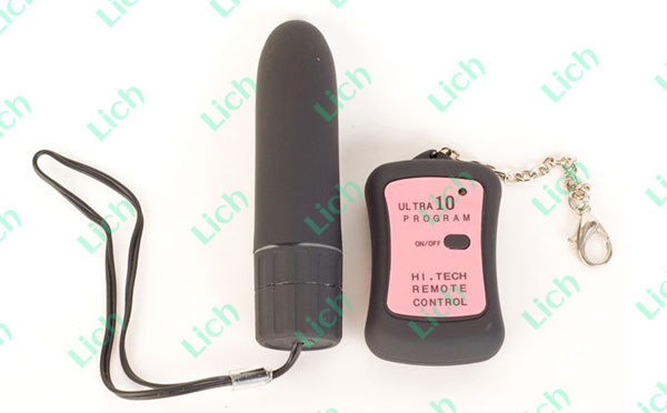 Черный вибратор с пультом дистанционного управления, работающем на расстоянии до 10 метров. Вибро-стимулятор из пластика с покрытием Velvet Touch, которое делает бархатистым на ощупь игрушку. Пульт с радиоуправлением, может контролировать 10 различных функций вибрации стимулятора. Батарейки в комплекте. Водонепроницаемый. Длина- 10 см, диаметр - 3 см.