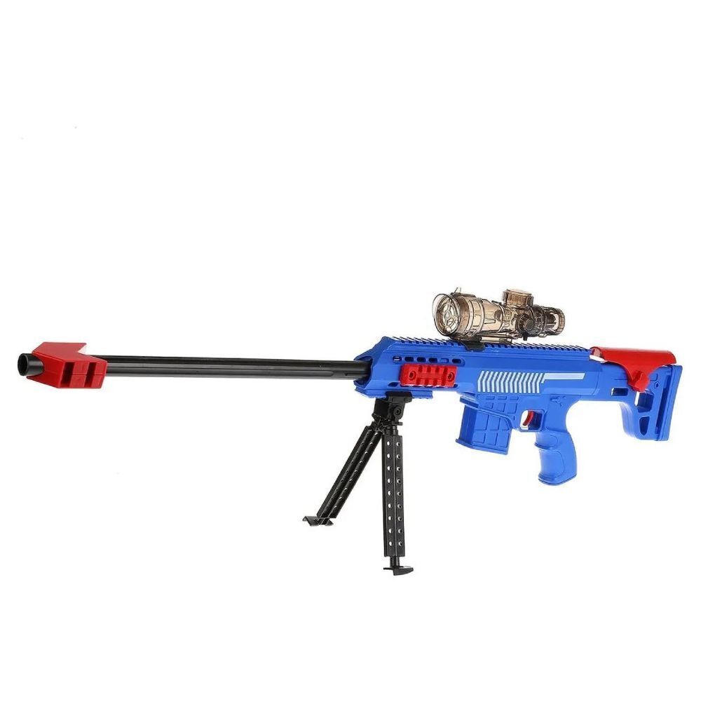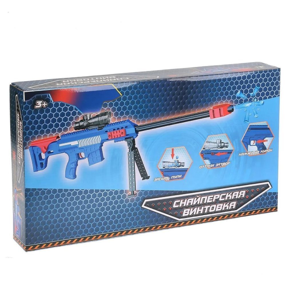 Снайперская винтовка ТМ «Играем вместе» с гелевыми пулями станет любимой игрушкой вашего ребёнка. Винтовка синего цвета изготовлена из высококачественного пластика. В комплект входят сошки (подставка), ствол и снайперский прицел и гелевые шарики. Также эту винтовку можно заряжать мягкими пулями (в комплект не входят). Дальность стрельбы достигает 20 метров.
