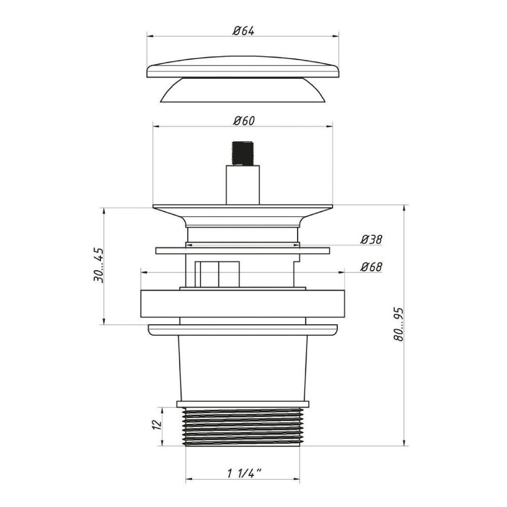 Выпуск автоматический "клик-клак" для умывальника 1 1/4 пластиковый. Необходим сифон с патрубком с резьбой 1 1/4.
