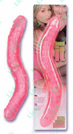 Двухголовый фаллос на гибком стержне. Принимает любой изгиб по вашему желанию. Выполнен из прозрачного скользкого силикона розового цвета. 33 см. длины покрыты реалистичным рельефом. Диаметр 4 см. Нет предела вашей страсти.