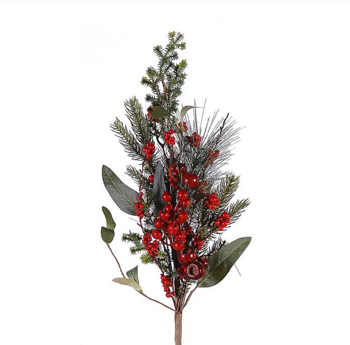 Ветка с ягодами и шишками станет замечательным украшением любого интерьера в новогодние и рождественские праздники!